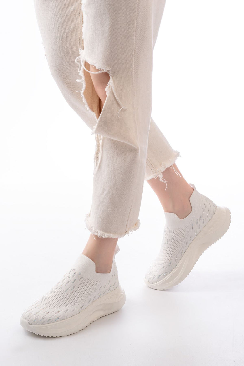 Lahotse Beyaz Fileli Faillant Taban Taş Aksesuarlı Spor Ayakkabı