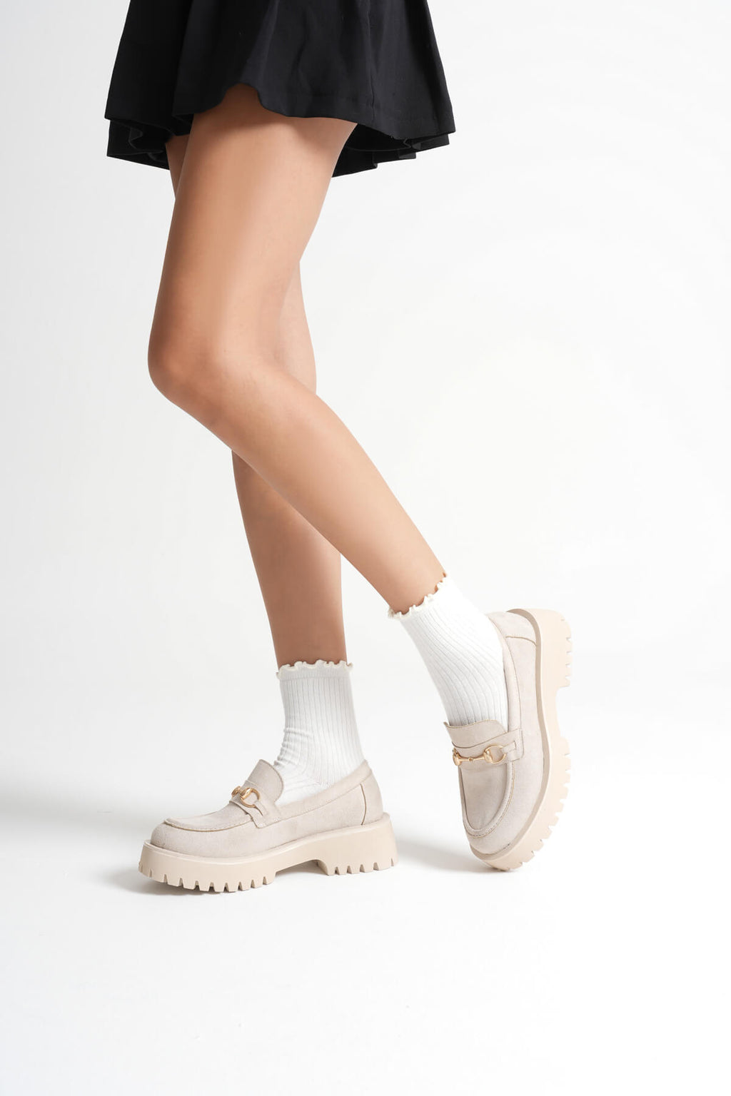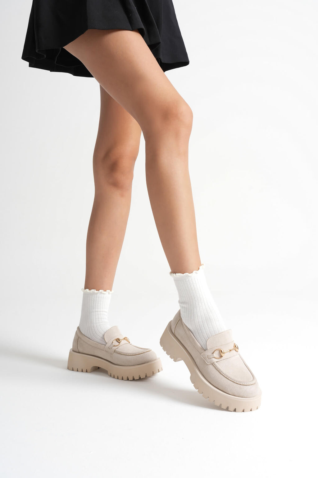 Lara Toka Detaylı Bej Süet Loafer Ayakkabı