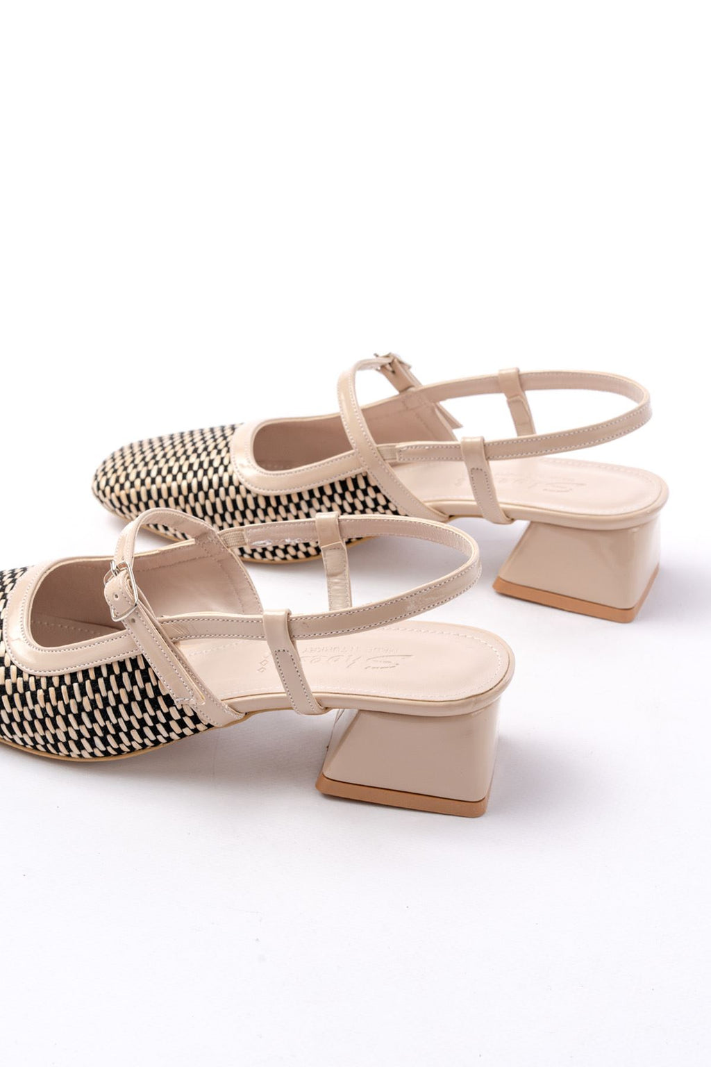 Larknu Bej Desenli Arkası Açık Günlük Kadın Sandalet
