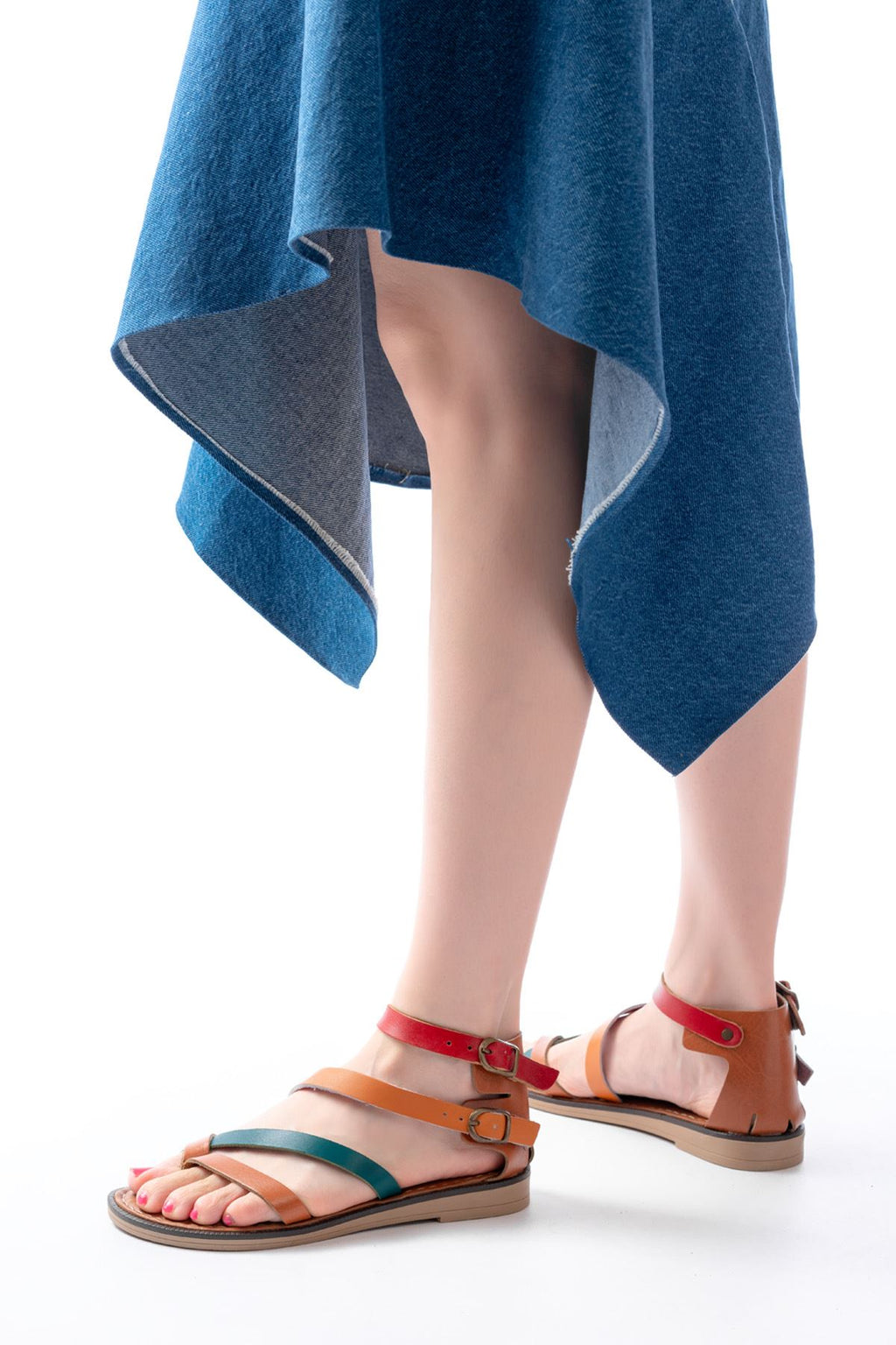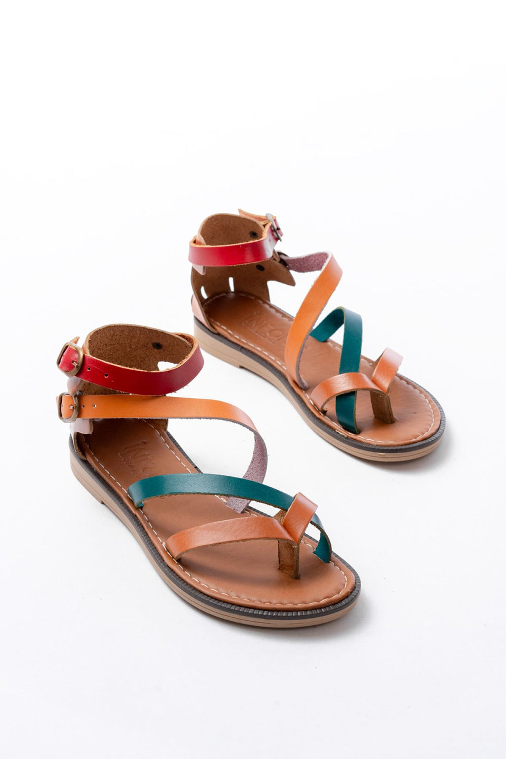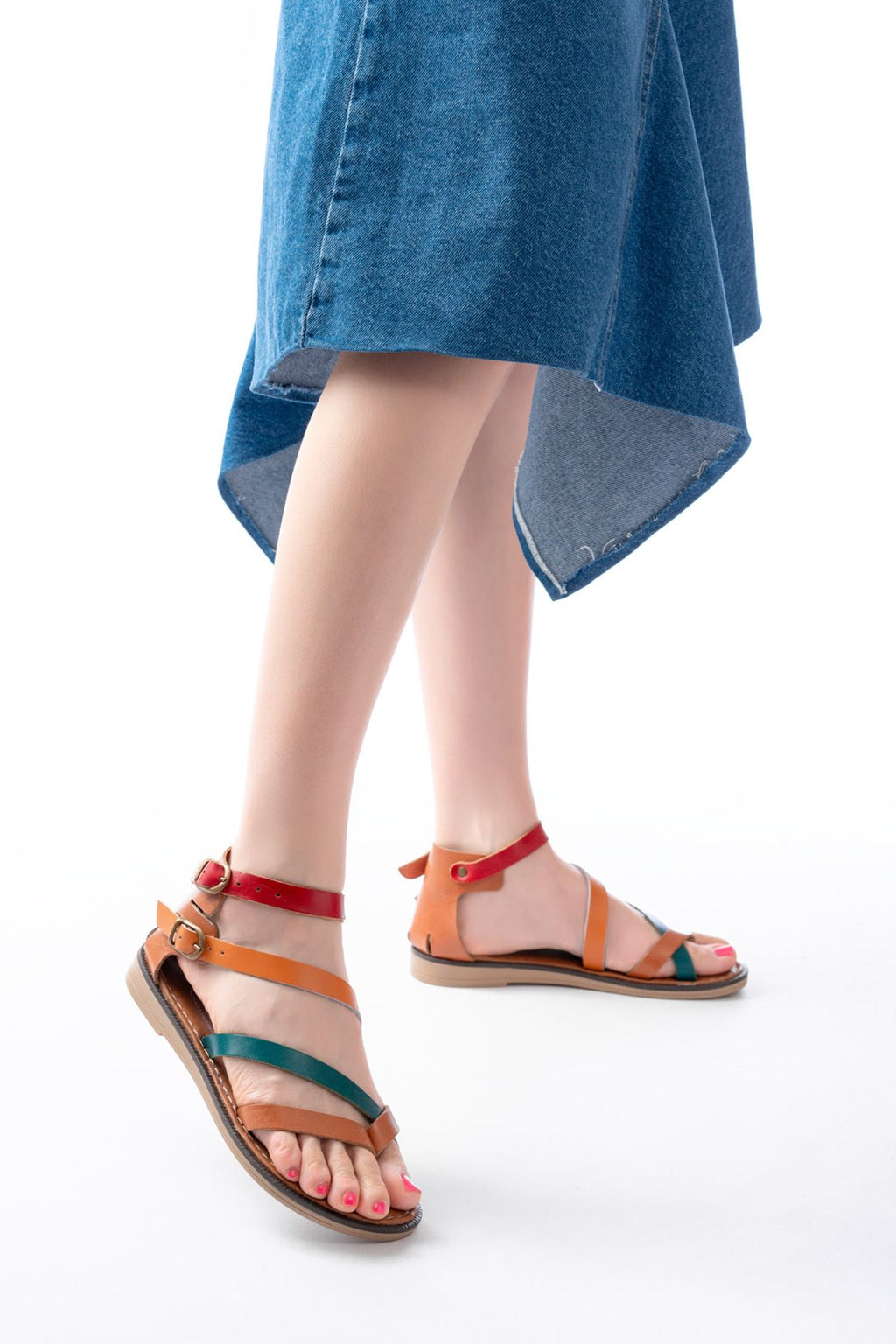 Leherty Taba Multi Bilekten Bağlamalı Parmak Arası Kadın Sandalet