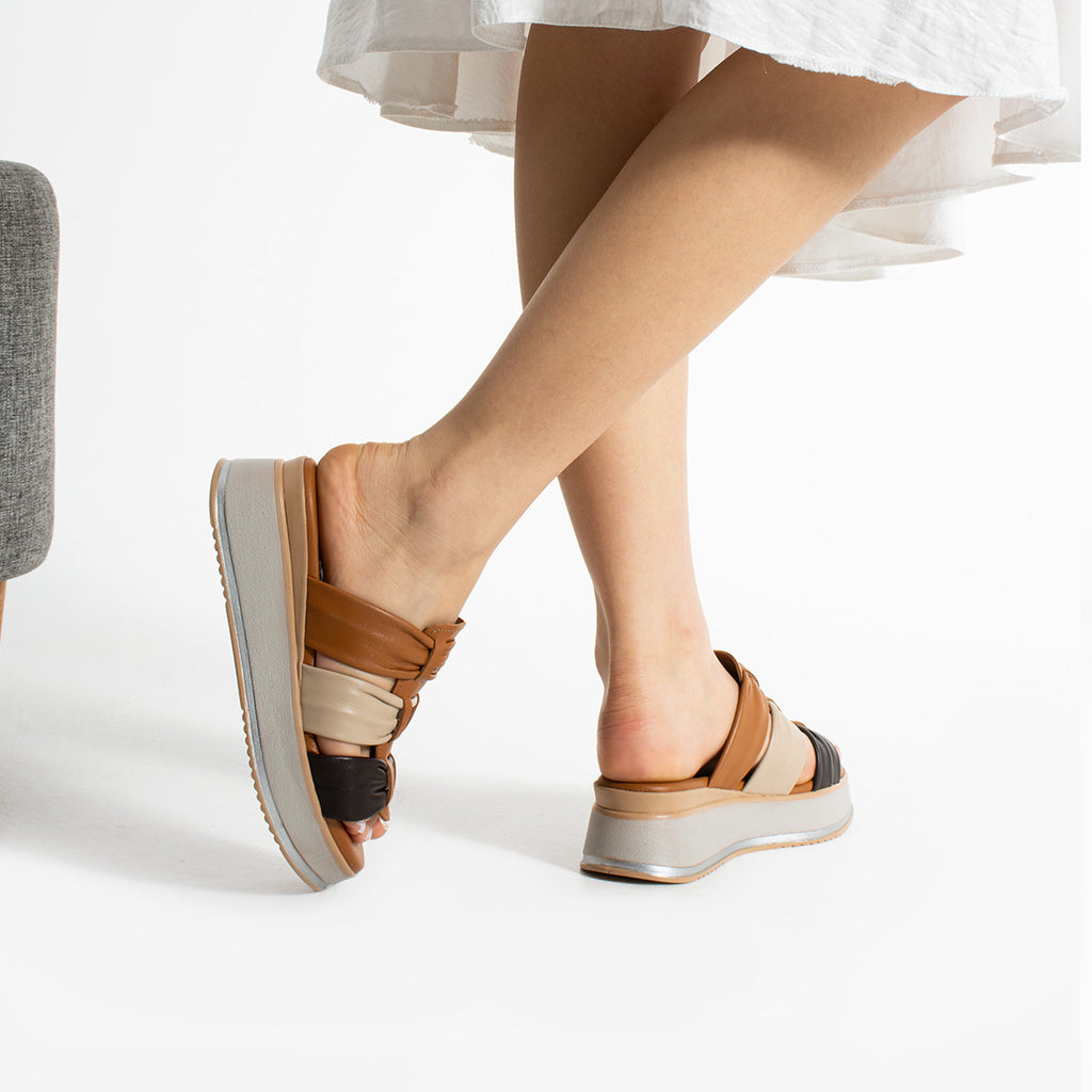 Lemy Kadın Hakiki Deri Bej Kahve Terlik