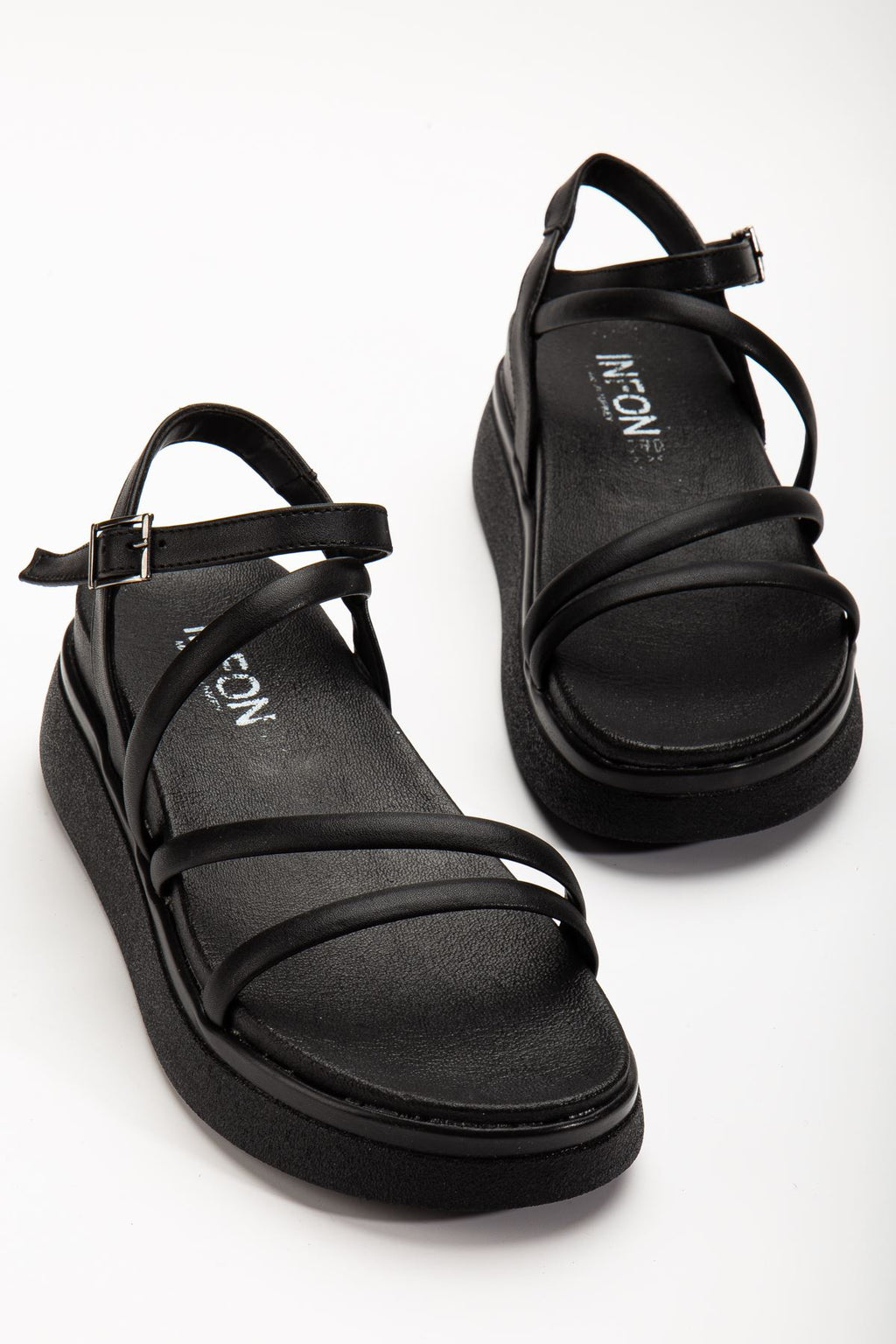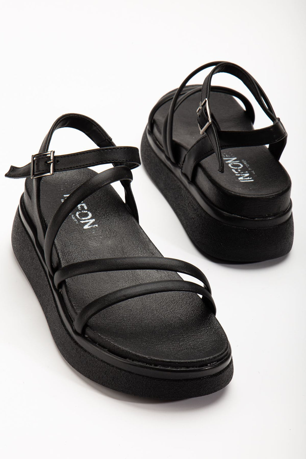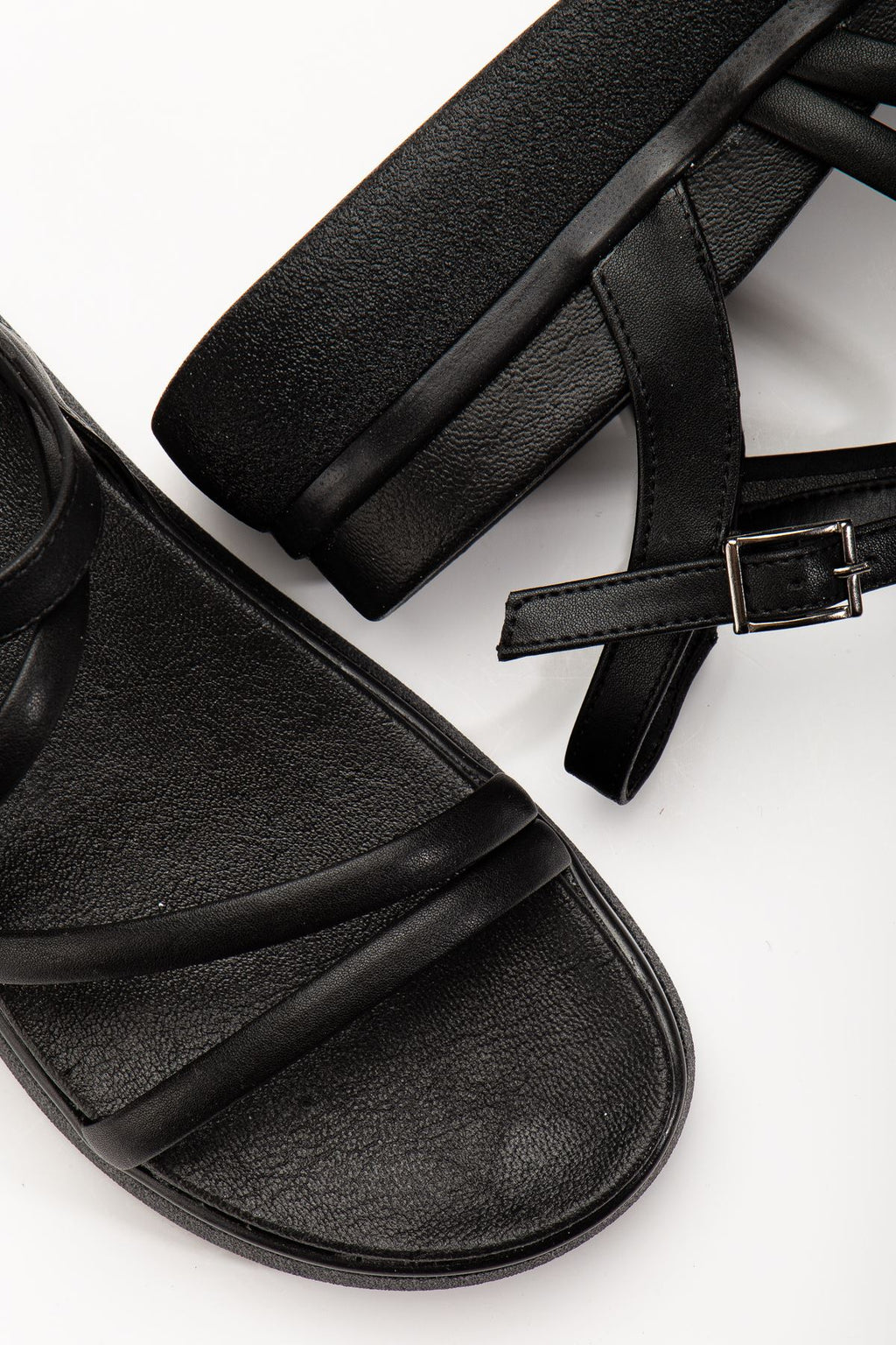 Numba Siyah Hakiki Deri Çapraz Bantlı Kadın Terlik