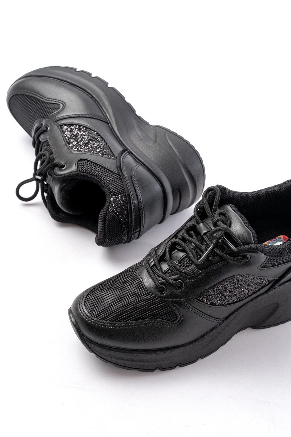 Macalu Kadın Siyah Fileli Taşlı Spor Ayakkabı