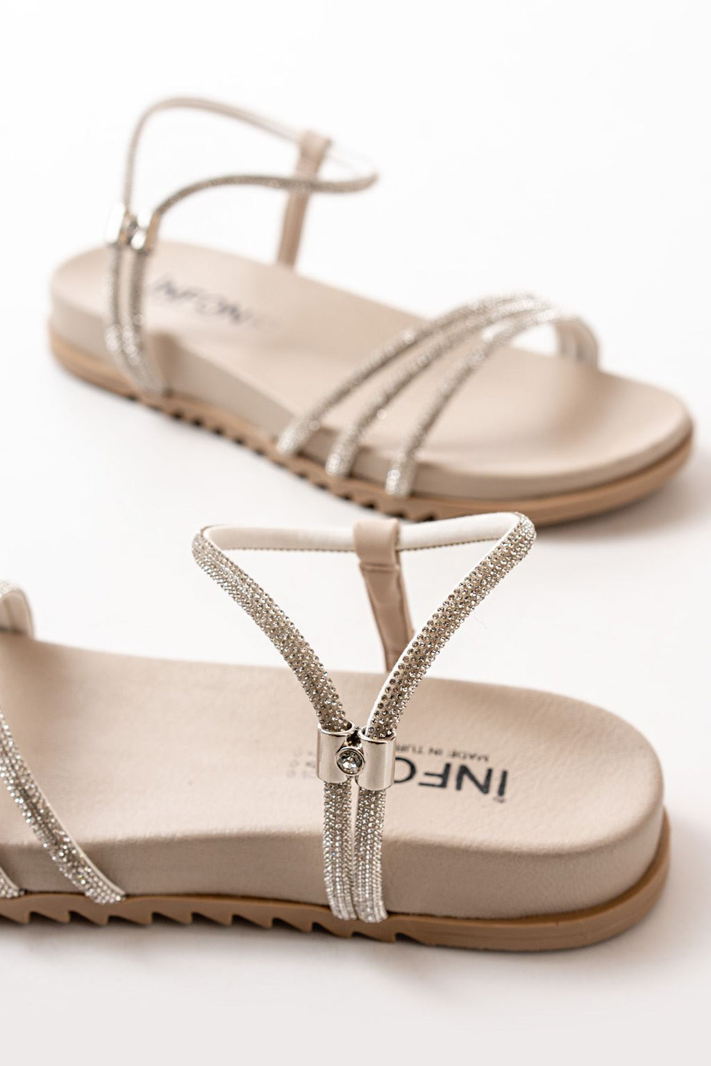 Mafes Bej Gümüş Taşlı Günlük Kadın Sandalet