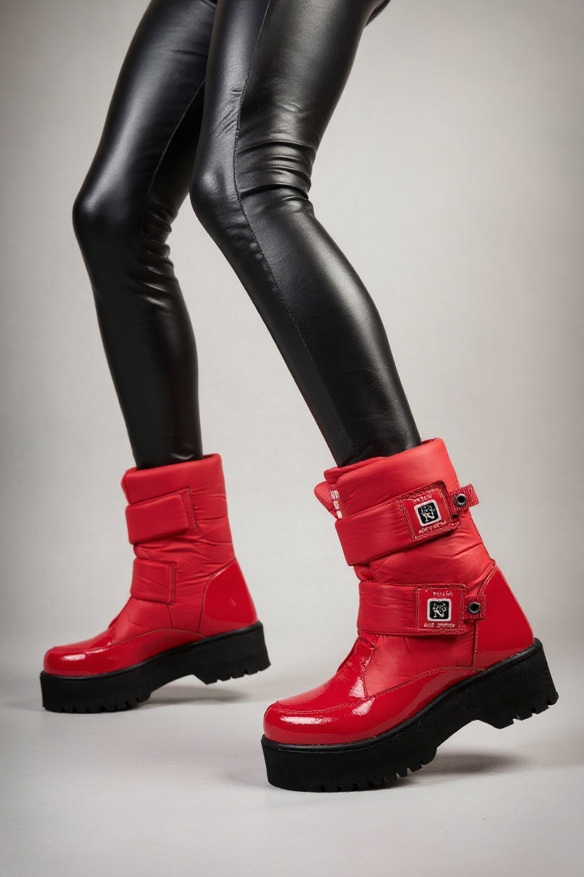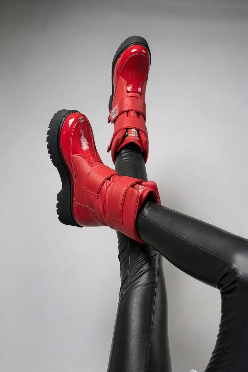 Masah Kadın Kırmızı Rugan Cırt Cırtlı Kar Botu