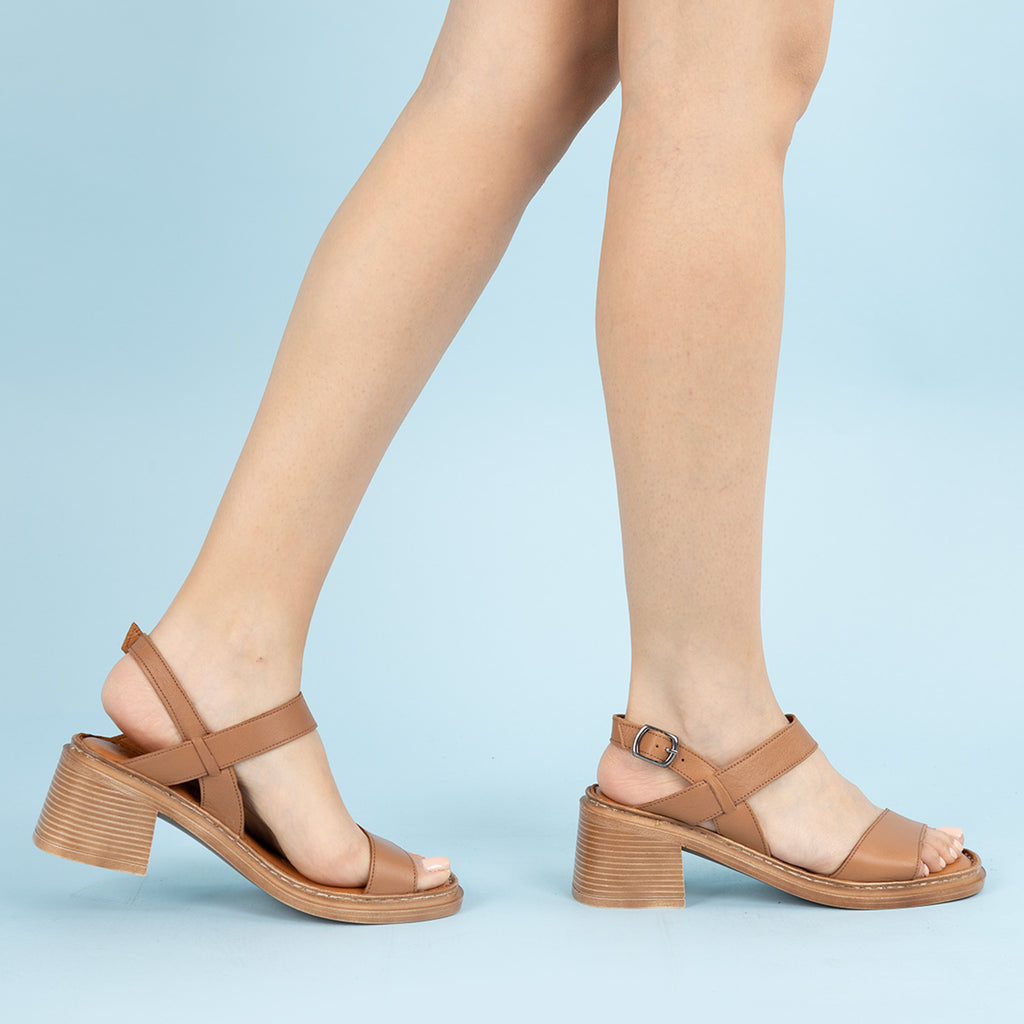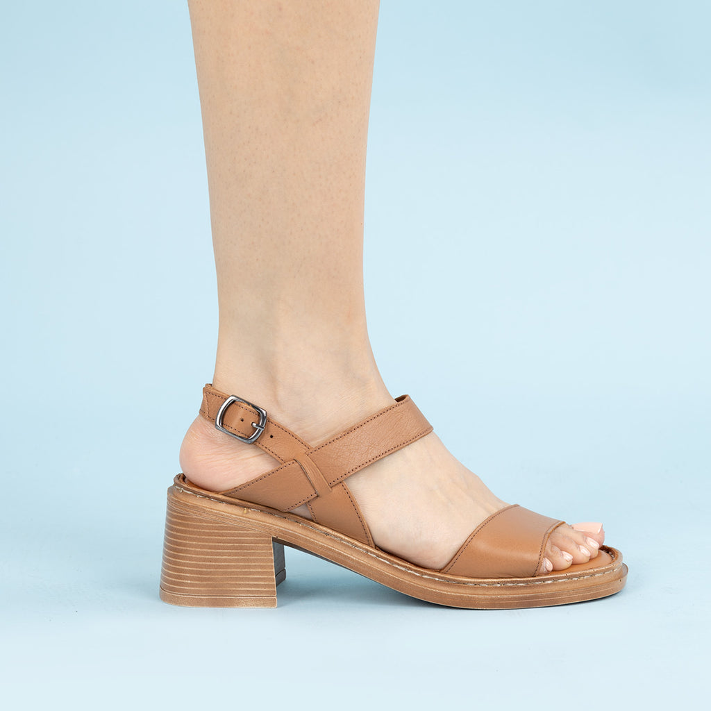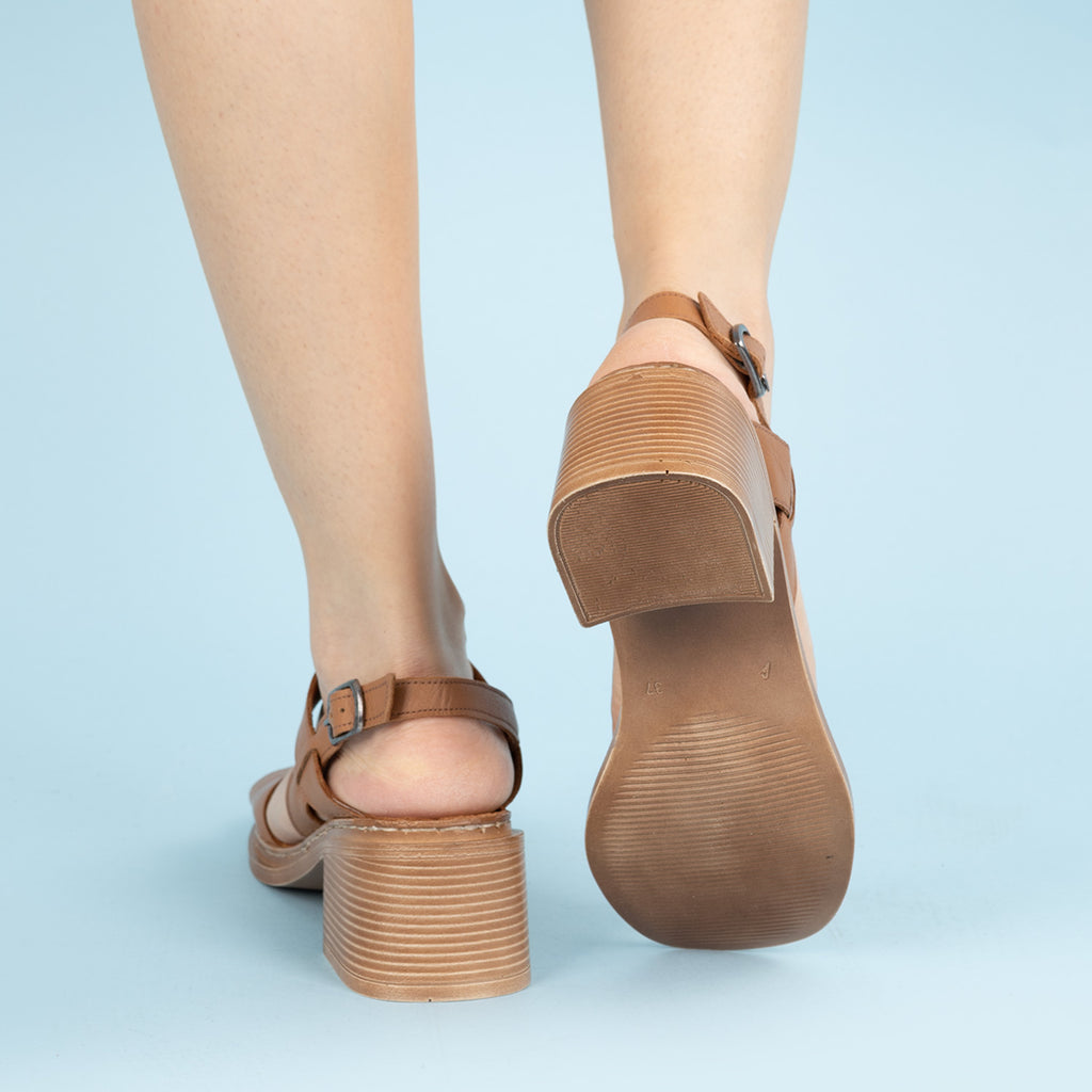 Mavel Kadın Hakiki Deri Taba Kalın Topuklu Ayakkabı