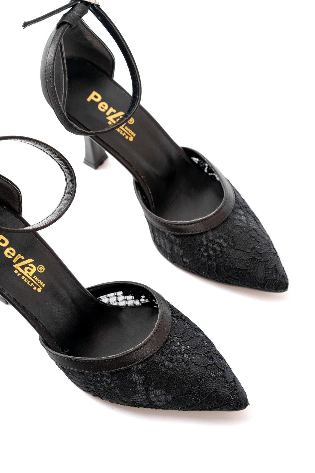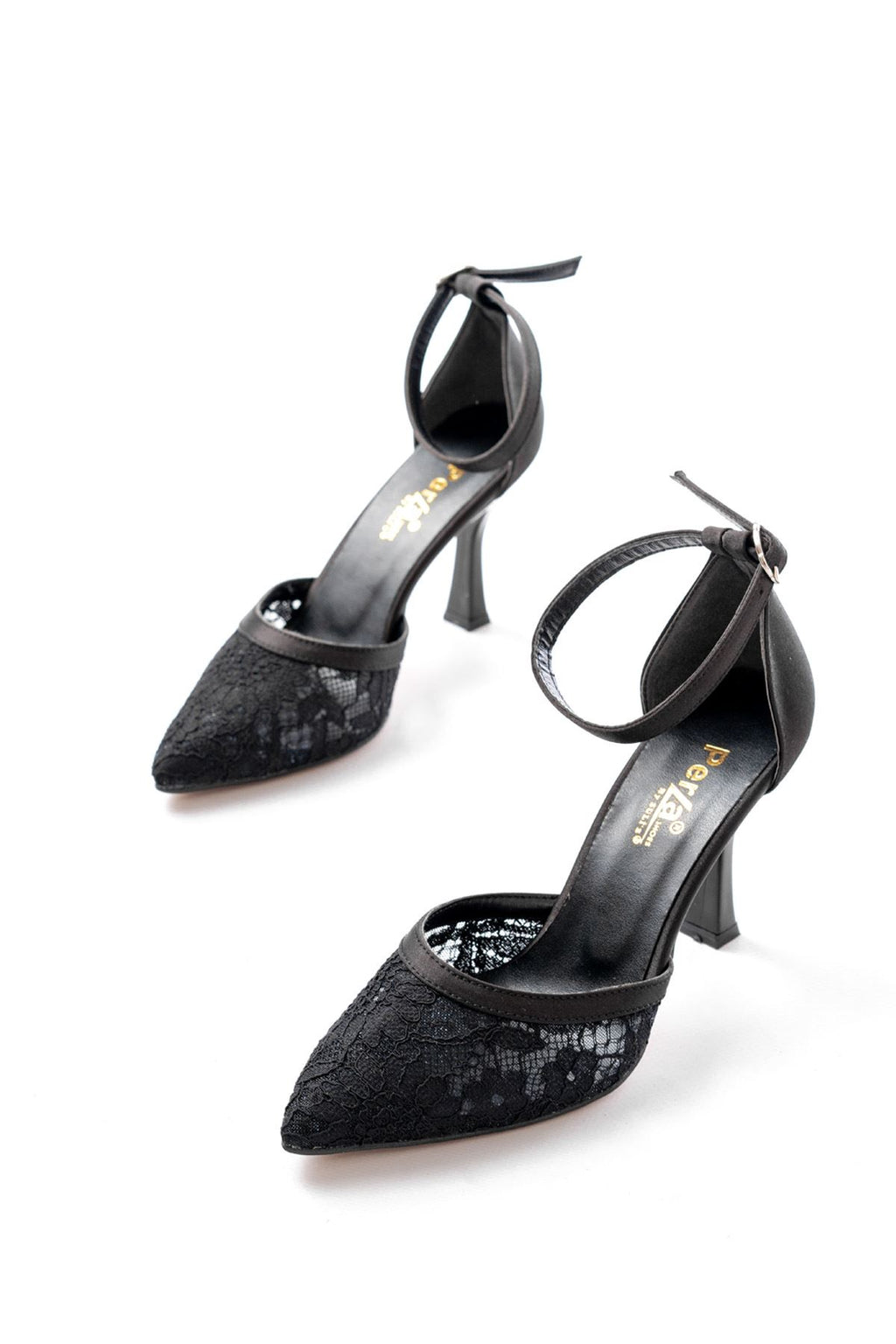 Meroje Siyah Fileli Çiçek Detaylı Kadın Abiye Topuklu Ayakkabı
