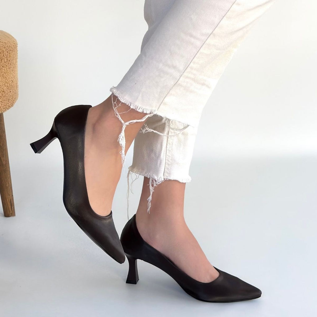 Modern çizgileri zarif bir siluetle buluşturan Mırta model topuklu ayakkabı, sade tasarımı sayesinde farklı kombinlerle kolayca uyum sağlar. Dengeli topuk formu yürüyüş konforunu desteklerken, minimal görünümü günlük stilinden özel davet kombinlerine kadar geniş bir kullanım alanı sunar. Zamansız duruşu ile gardırobunun kurtarıcı parçalarından biri olmaya adaydır.