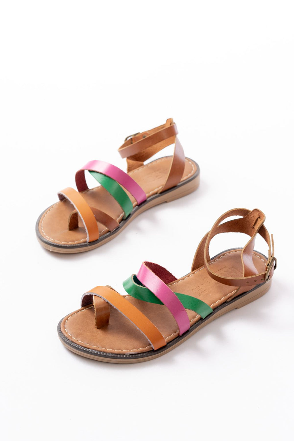 Numba Taba Hakiki Deri Çapraz Bantlı Kadın Terlik