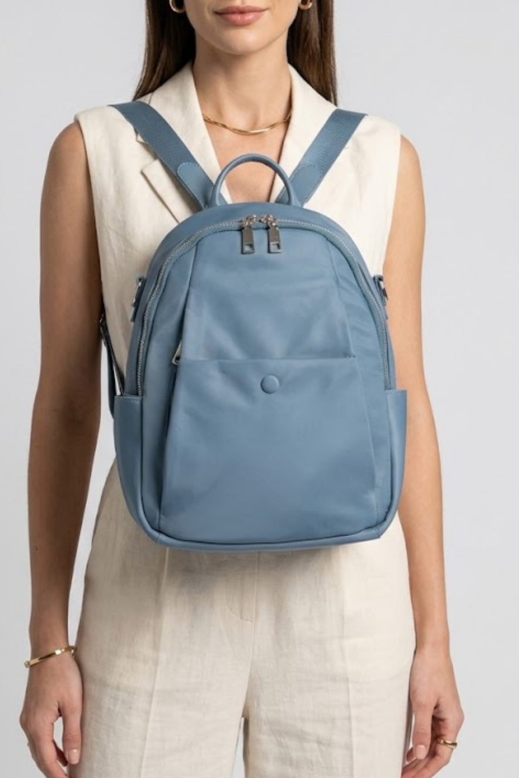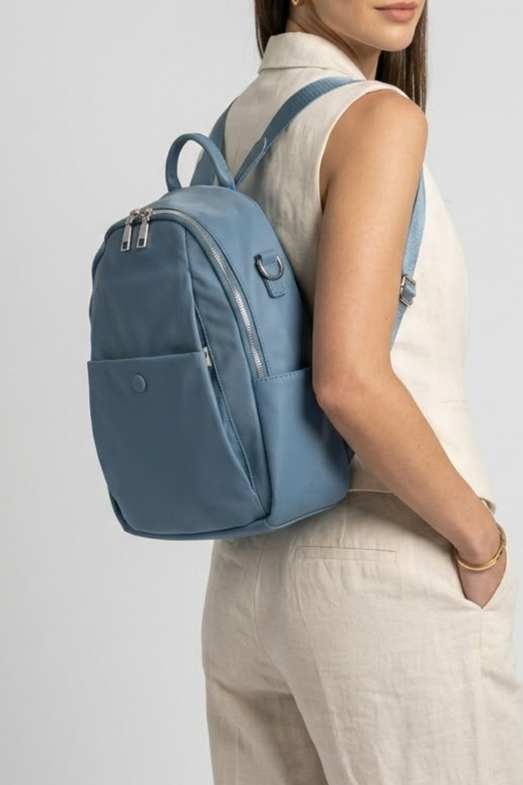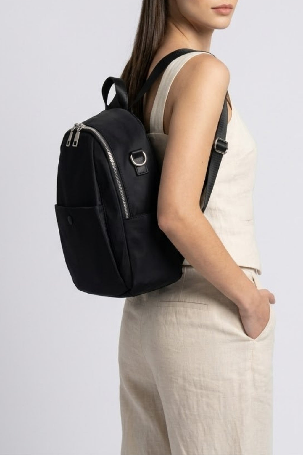Modern yaşamın temposuna ayak uyduracak şık ve kullanışlı bir sırt çantası! Geniş iç hacmi ve çoklu fermuarlı bölmeleri ile günlük ihtiyaçlarını düzenli bir şekilde taşıyabilirsin. Hafif ve dayanıklı yapısı sayesinde konforlu bir kullanım sunarken, suya dayanıklı yüzeyiyle eşyalarını koruma altına alır. Hem spor hem de casual kombinlerine uyum sağlayacak bu model, şık detaylarıyla stiline zarif bir dokunuş katacak.