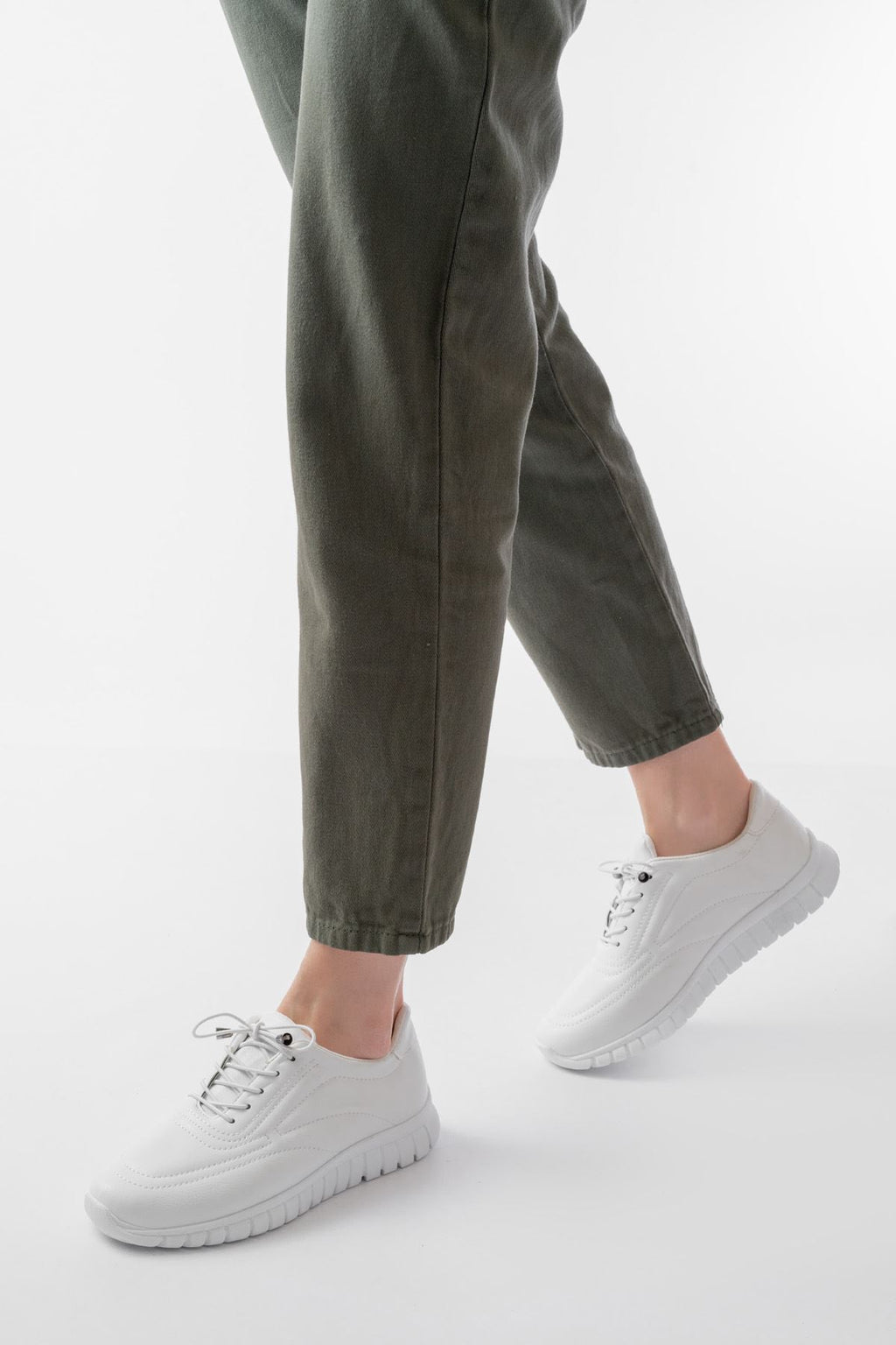Nangase Beyaz Bağcıklı Desenli Günlük Spor Ayakkabı