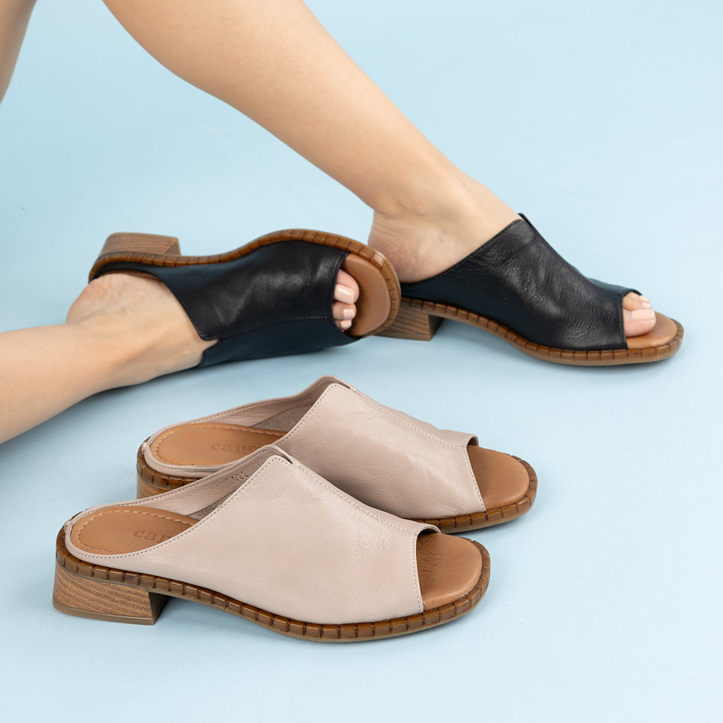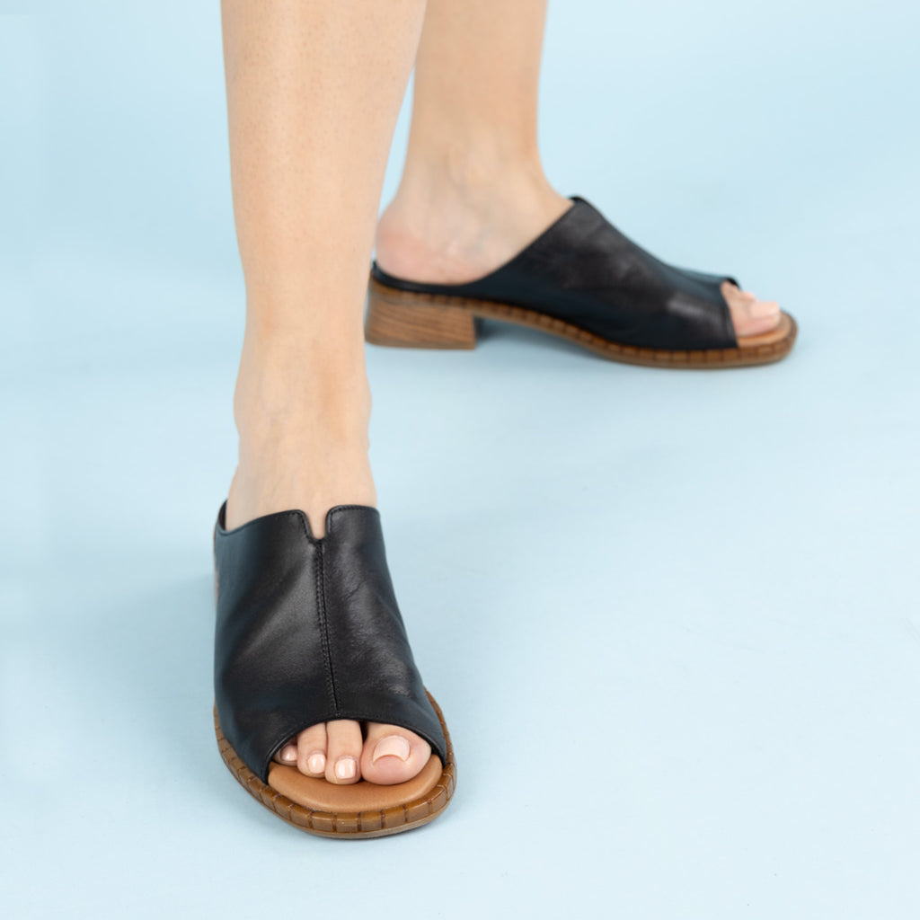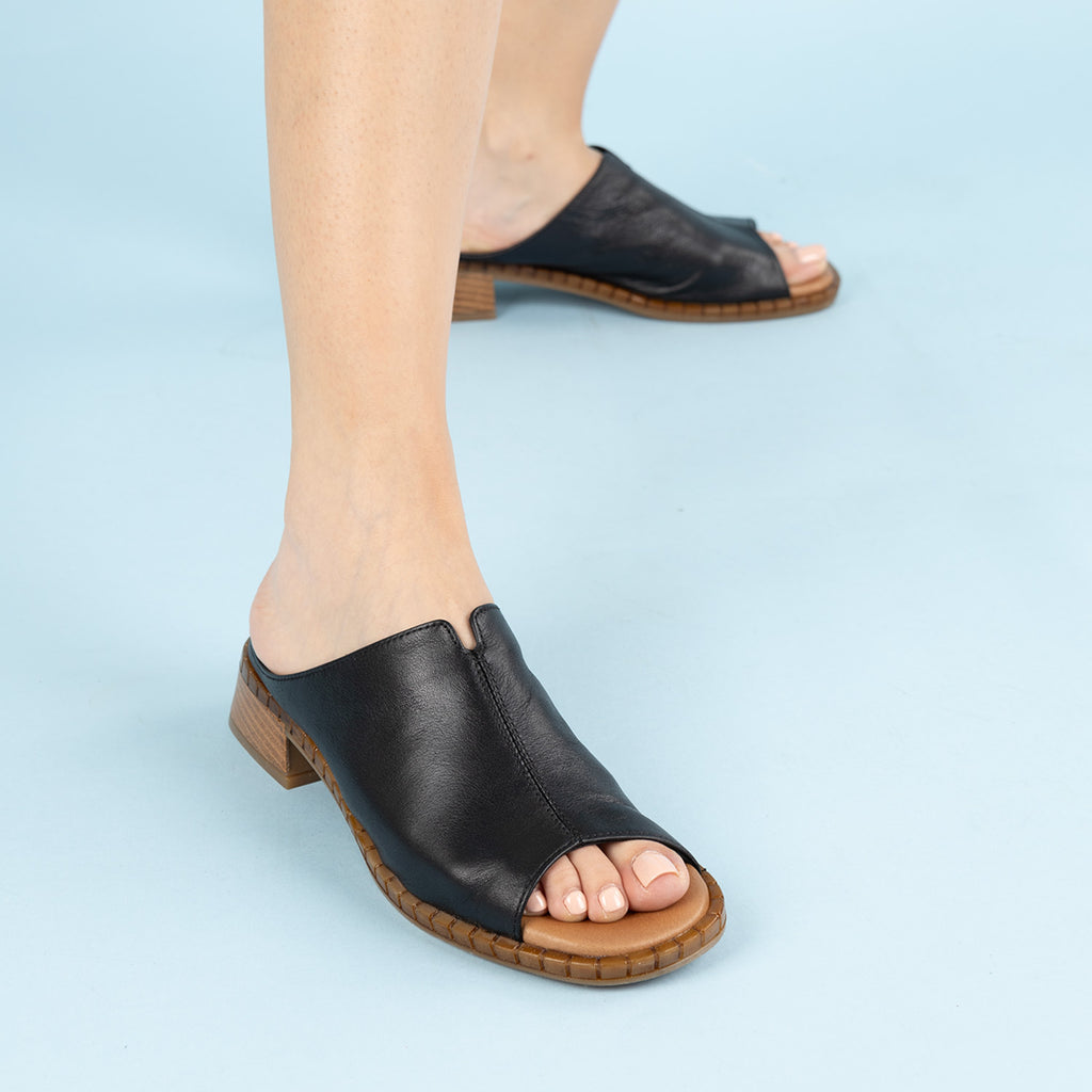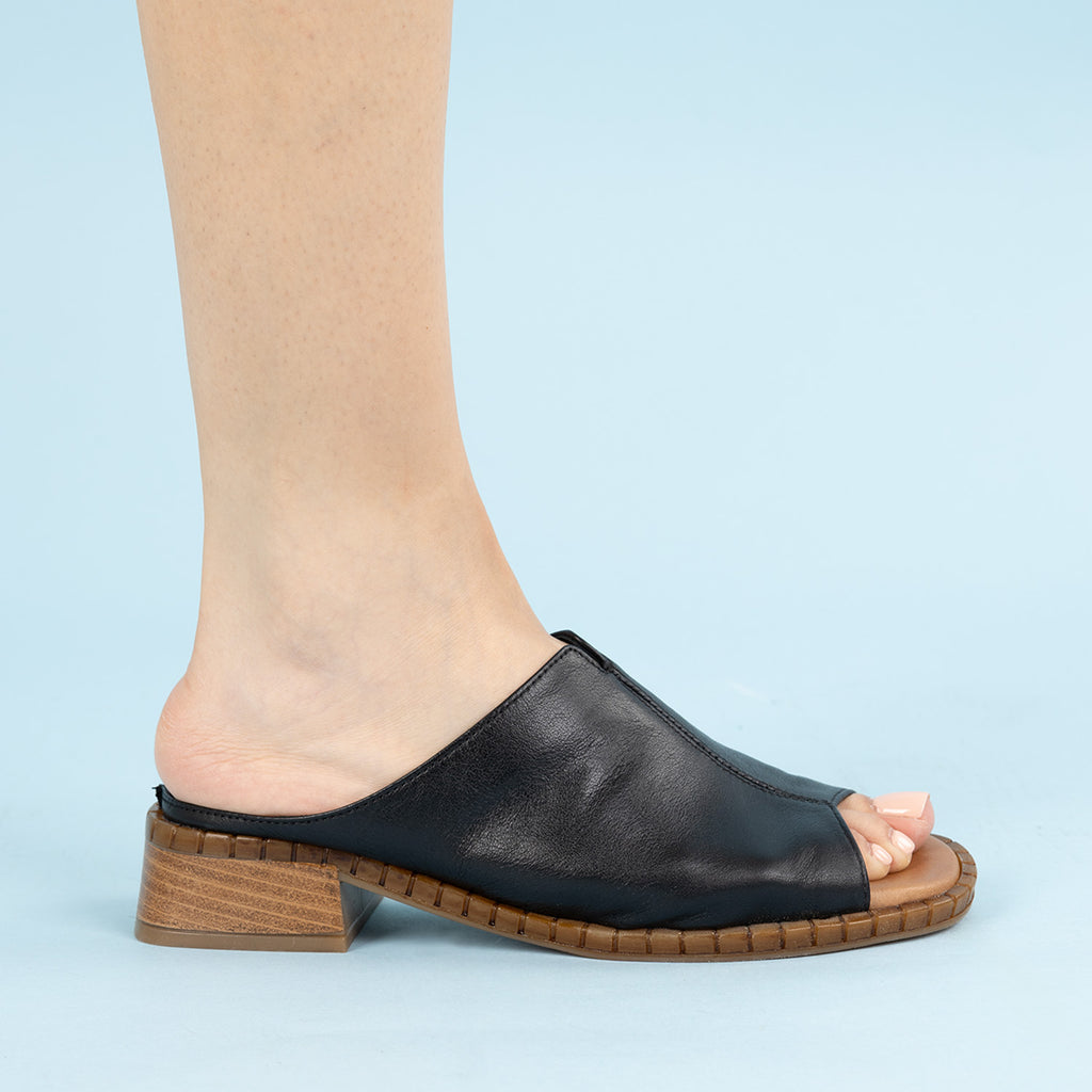 Naru Kadın Hakiki Deri Siyah Kısa Topuklu Terlik