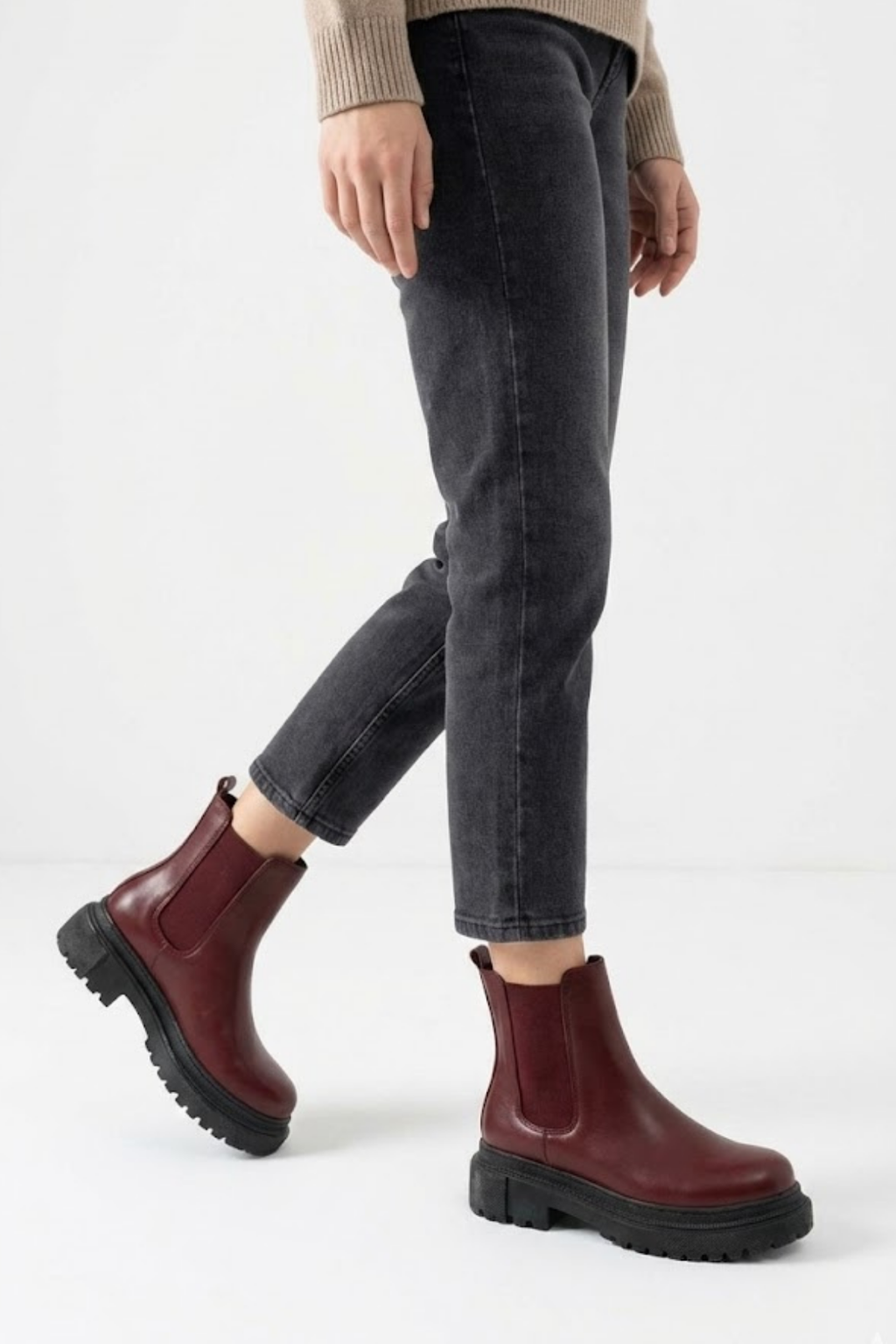 Nayliz Bordo Lastikli Kadın Bot