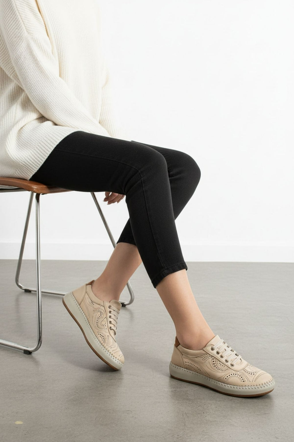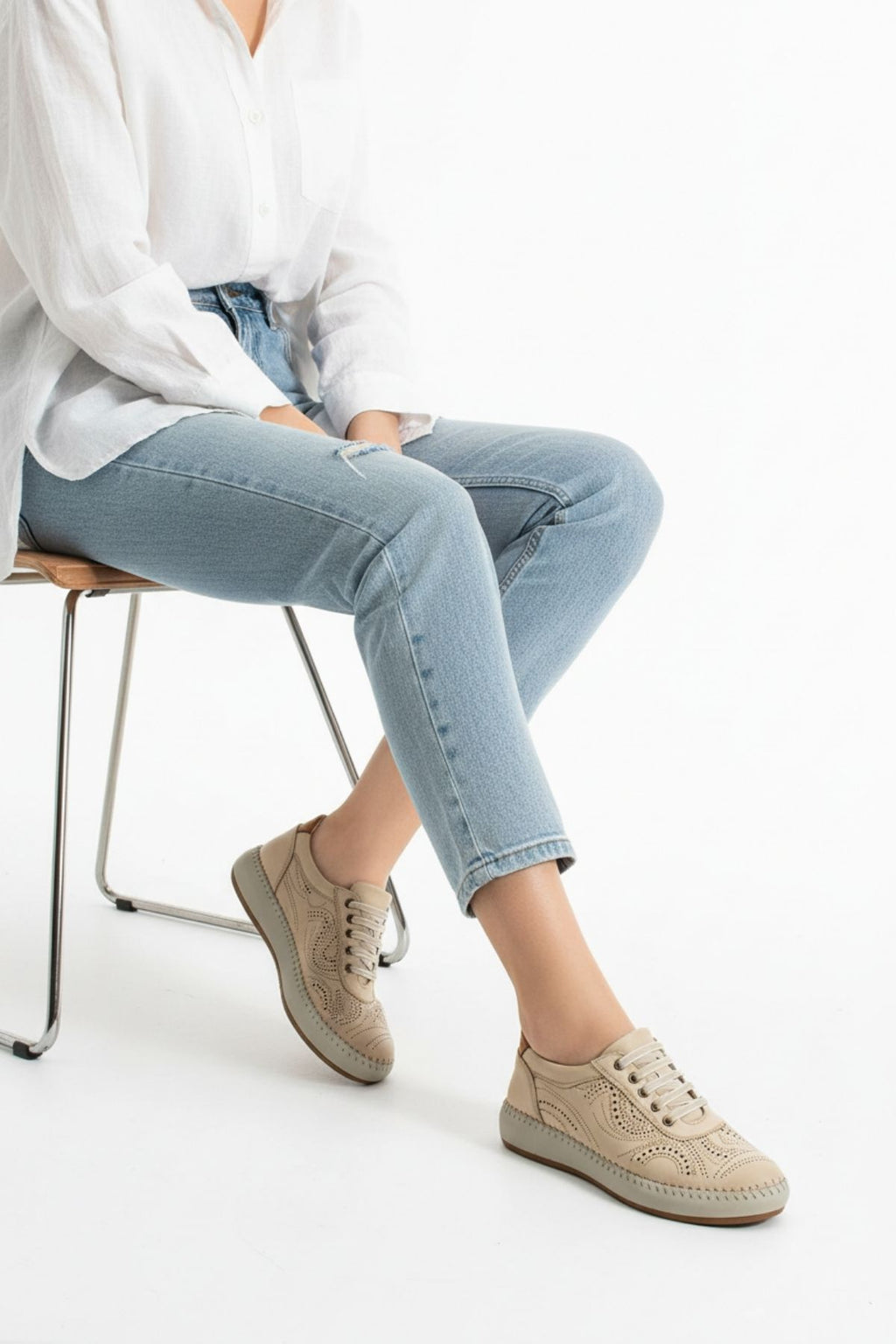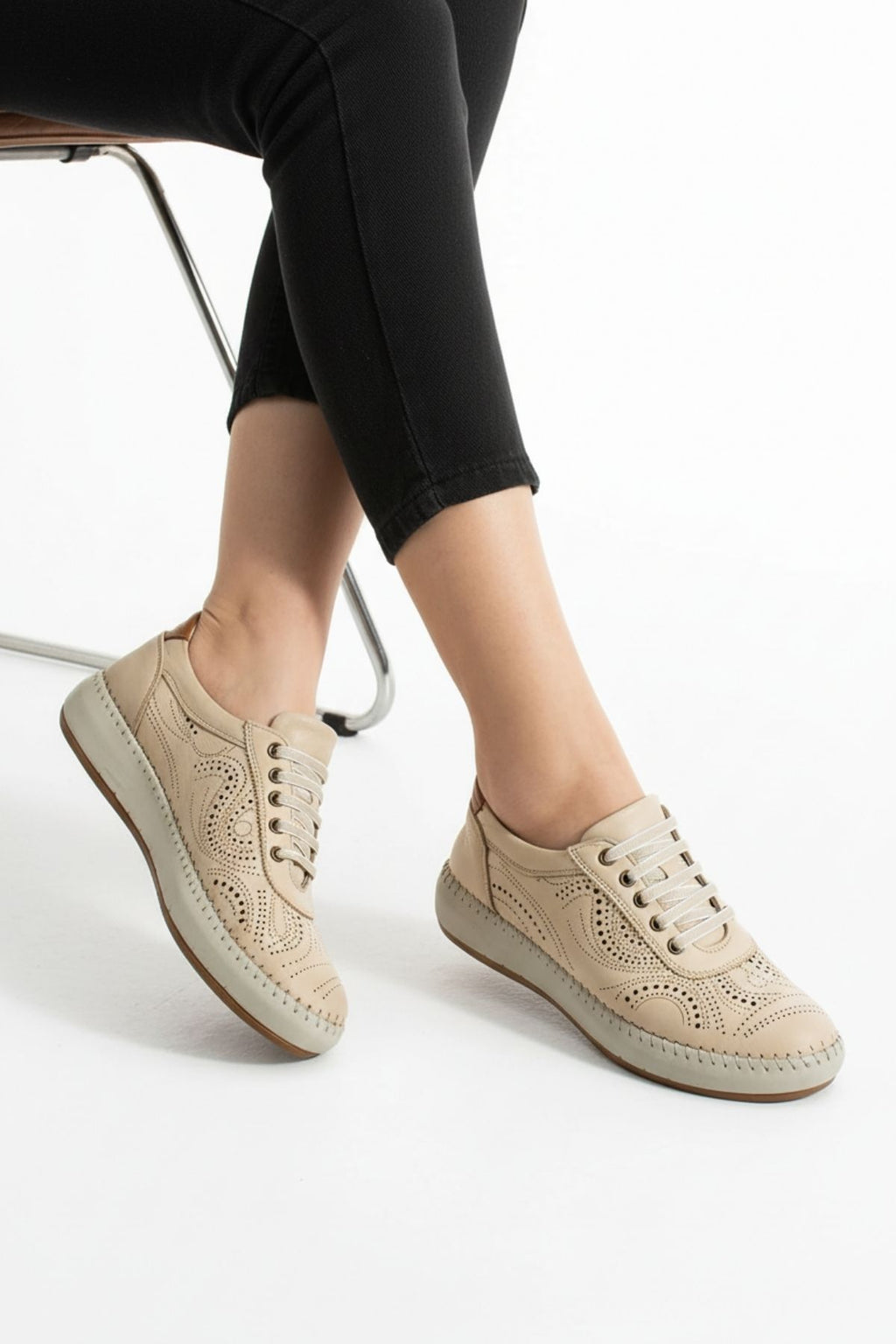 Ohen Kadın Hakiki Deri Bej Günlük Ayakkabı