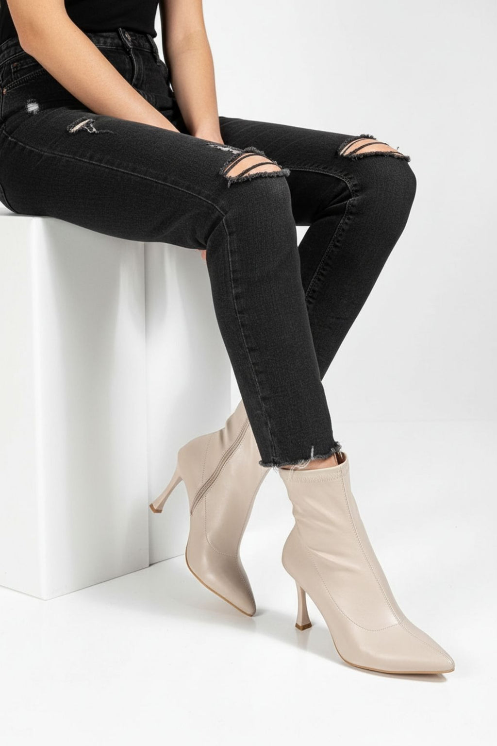 Zarif topuk formu ve streç yapısıyla ayağı kusursuz şekilde saran Orjen modeli, modern çizgileriyle güçlü bir duruş sunar. İnce burun tasarımı silueti daha uzun gösterirken, yandan fermuarlı yapısı kullanım kolaylığı sağlar. Dengeli topuk yüksekliği sayesinde şıklığı net bir formda tamamlar.