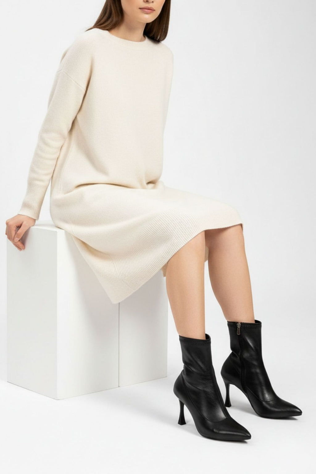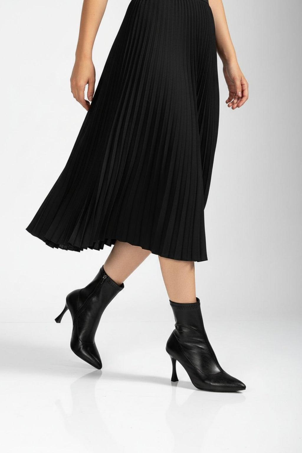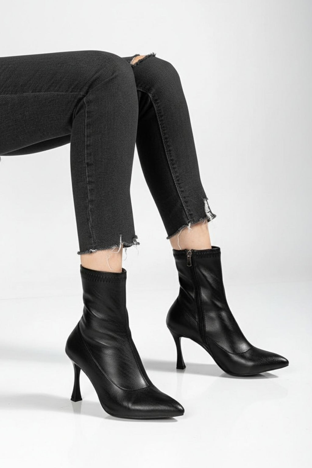Zarif topuk formu ve streç yapısıyla ayağı kusursuz şekilde saran Orjen modeli, modern çizgileriyle güçlü bir duruş sunar. İnce burun tasarımı silueti daha uzun gösterirken, yandan fermuarlı yapısı kullanım kolaylığı sağlar. Dengeli topuk yüksekliği sayesinde şıklığı net bir formda tamamlar.