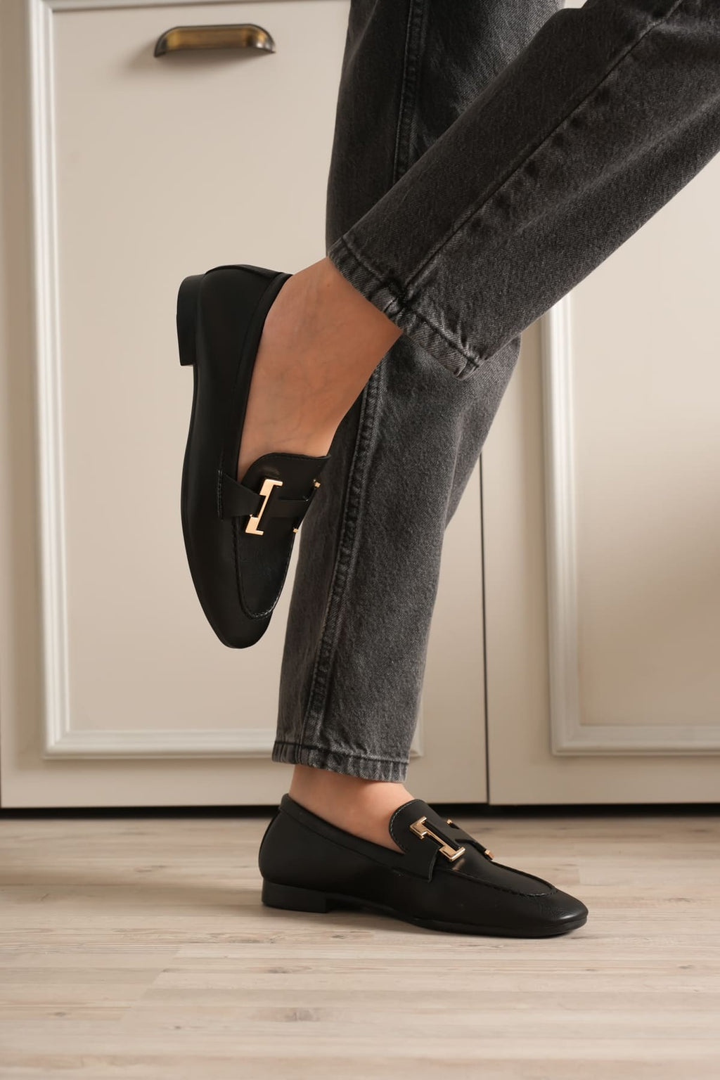 Orvyn Kadın Siyah Tokalı Babet Ayakkabı