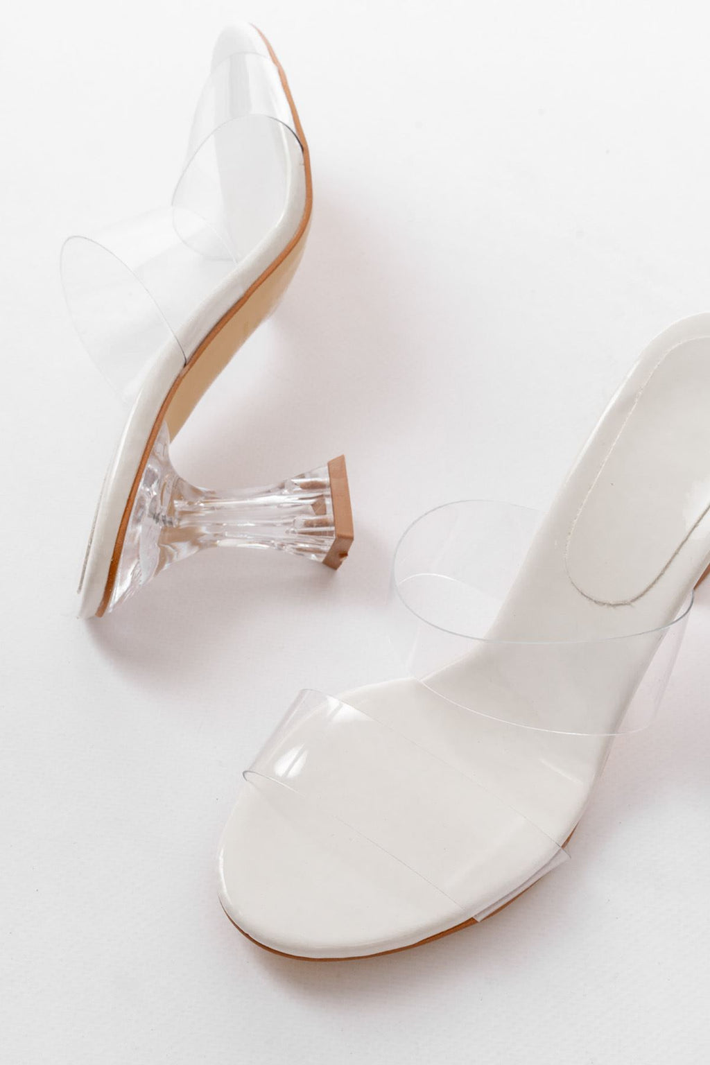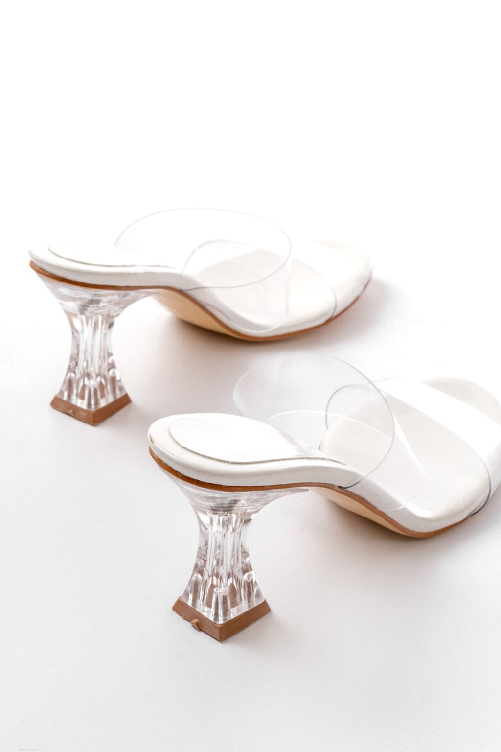 Ourenly Beyaz Rugan Çift Bantlı Topuklu Kadın Terlik