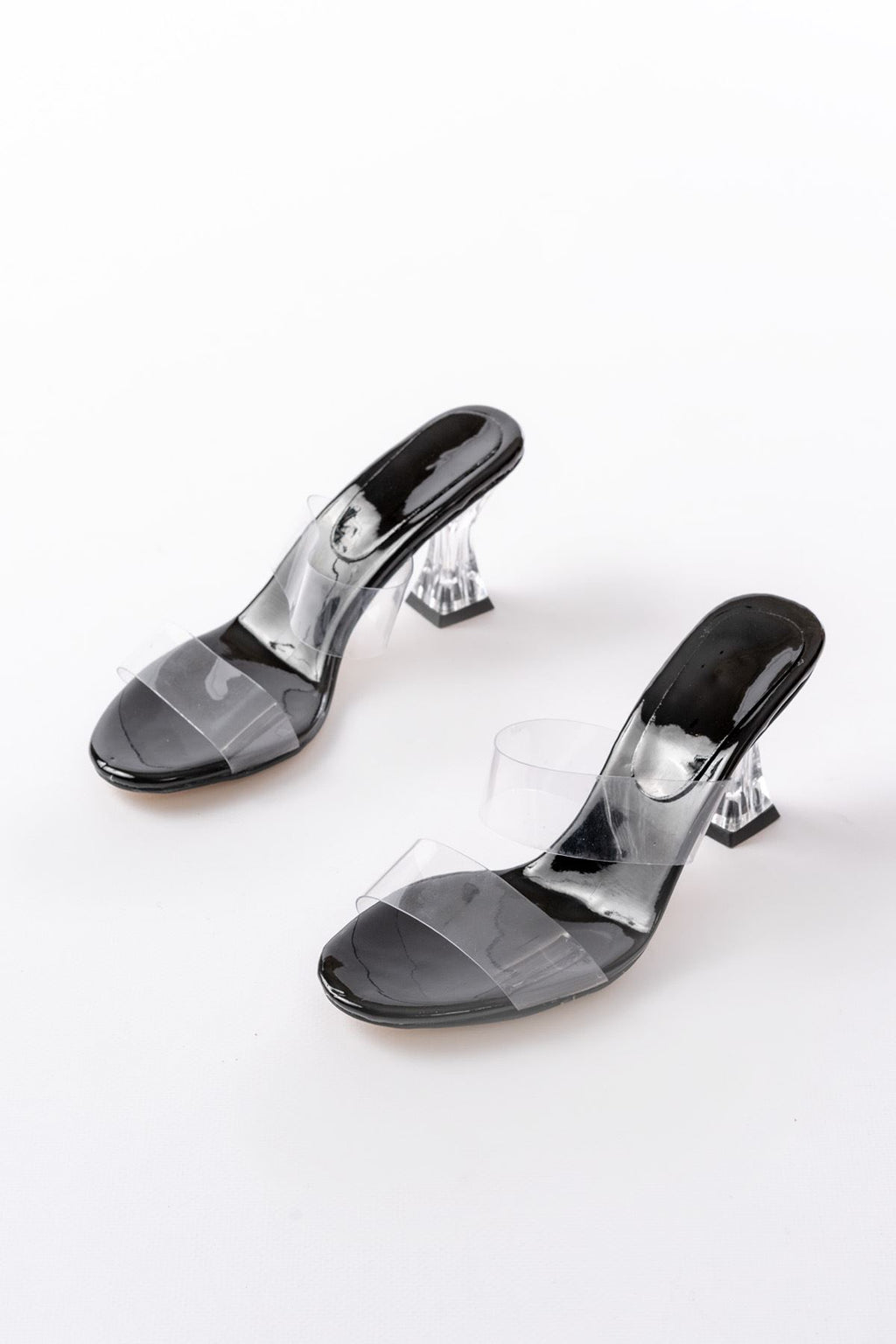 Ourenly Siyah Rugan Çift Bantlı Topuklu Kadın Terlik
