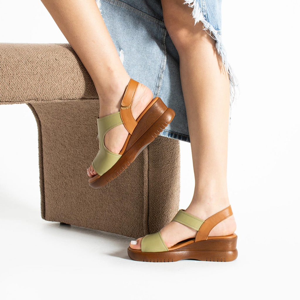 Page Kadın Hakiki Deri Su Yeşili Sandalet