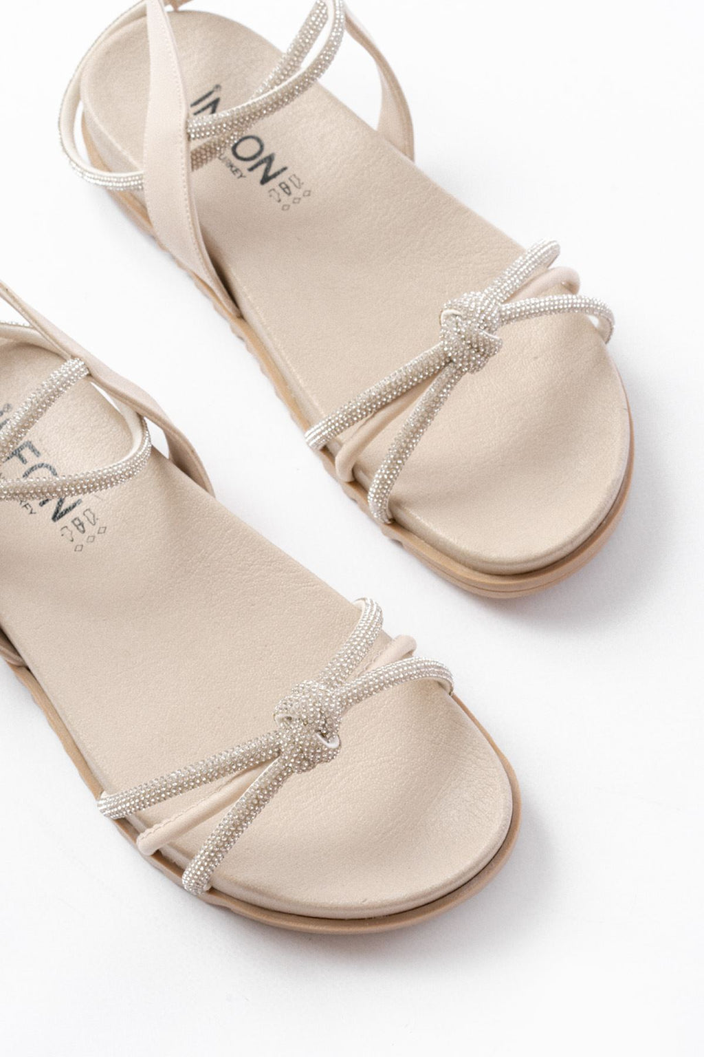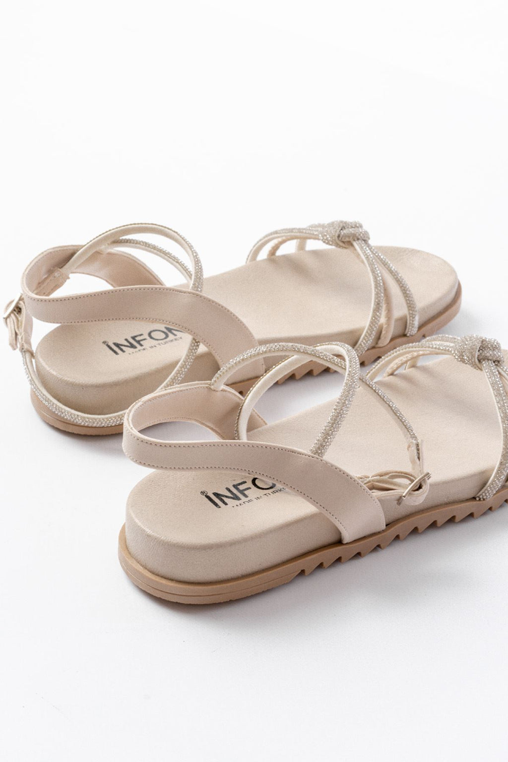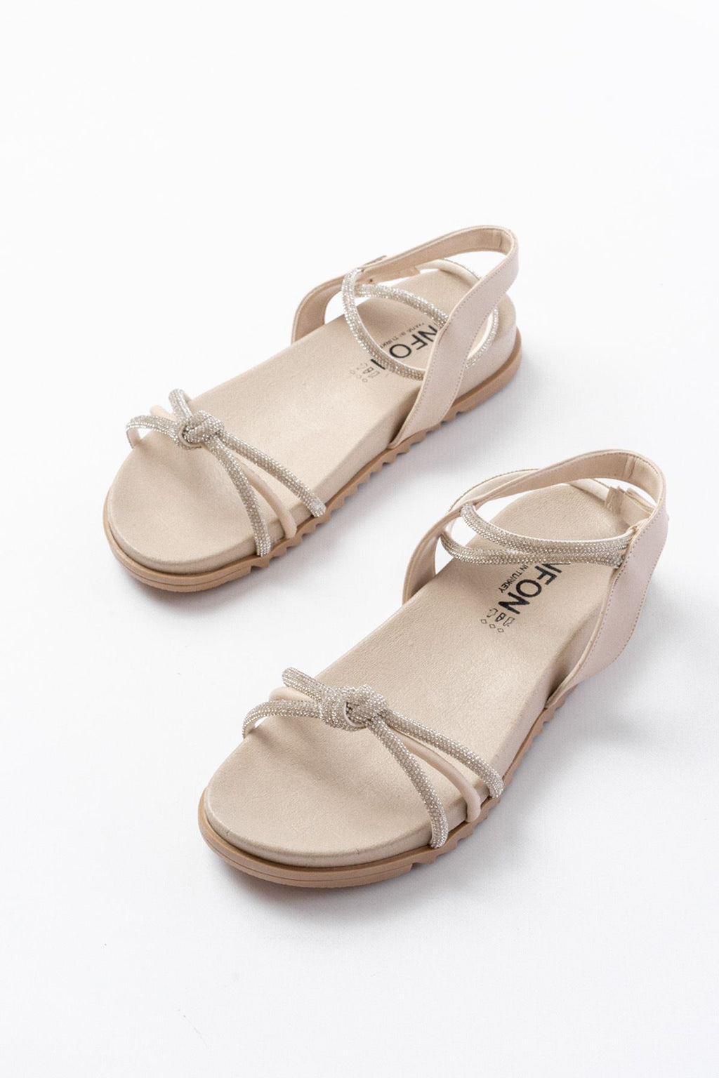 Paterms Bej Gümüş Taşlı Kadın Sandalet