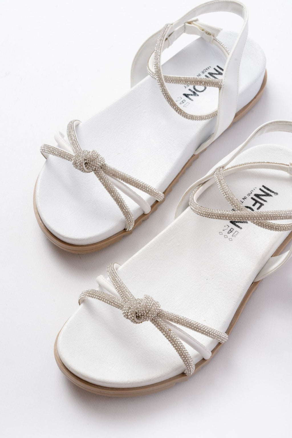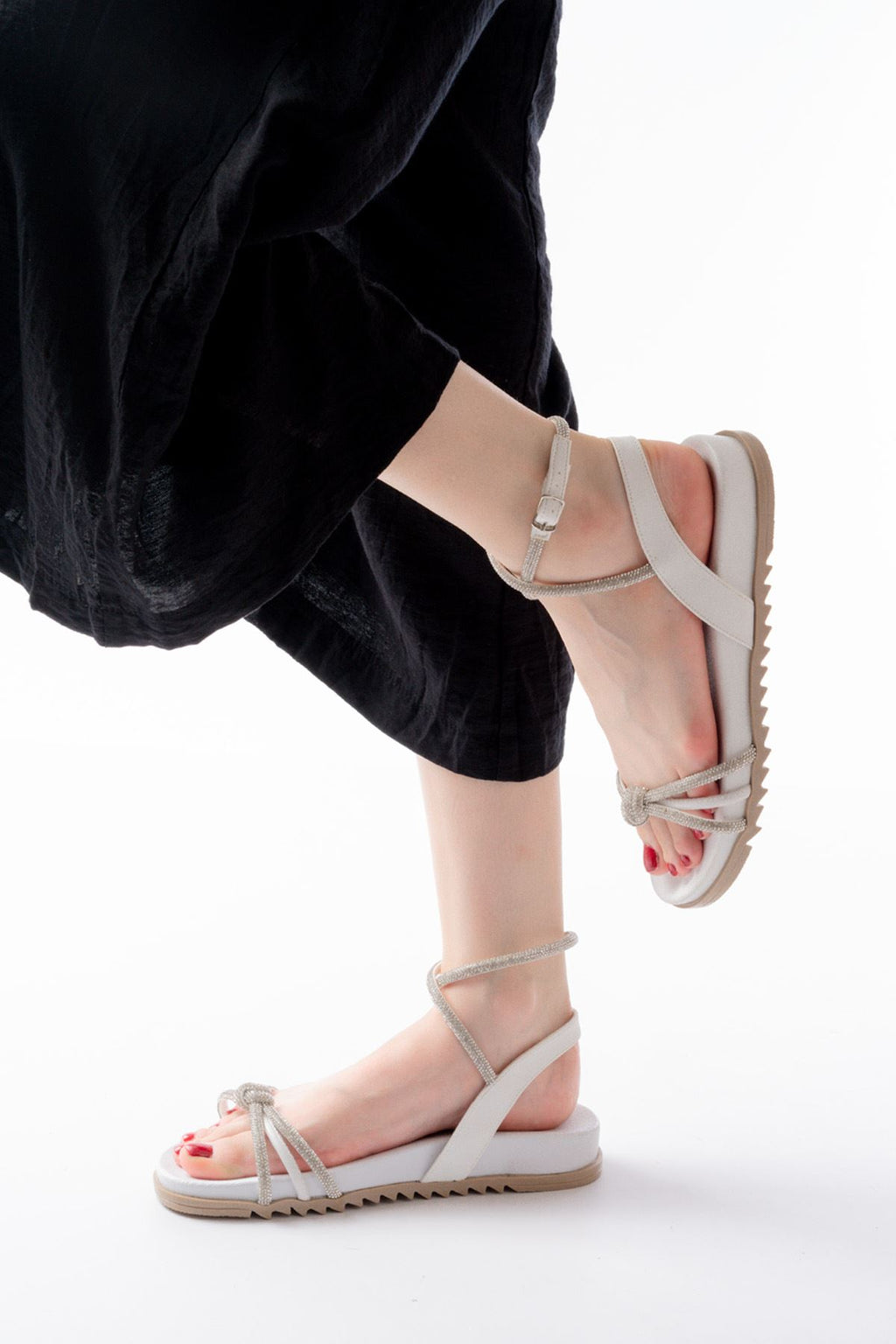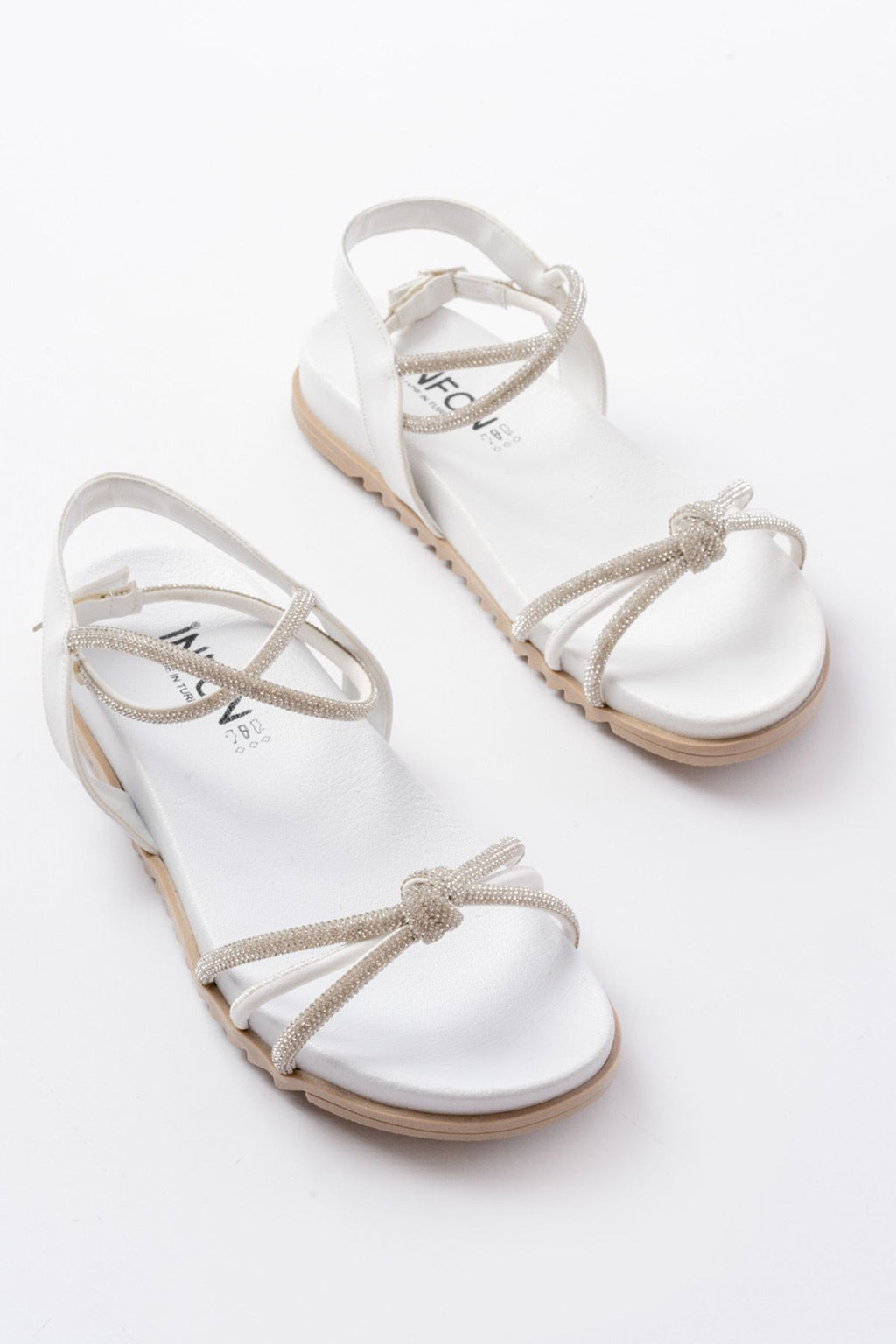 Paterms Beyaz Gümüş Taşlı Kadın Sandalet