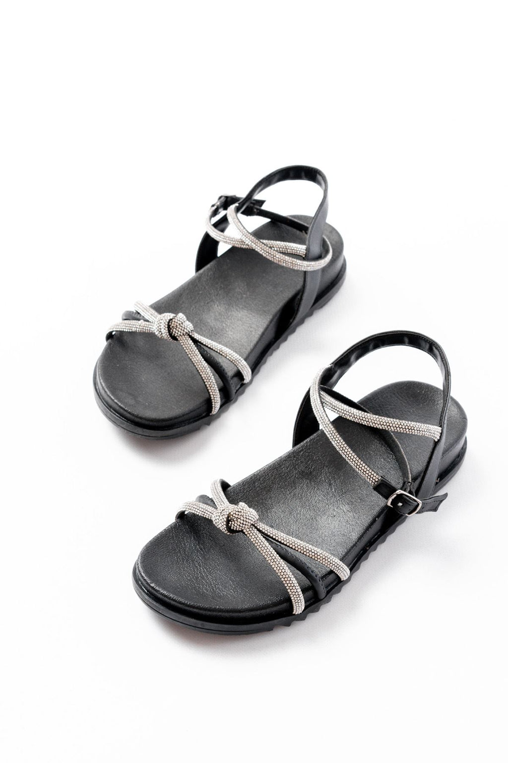 Paterms Siyah Gümüş Taşlı Kadın Sandalet