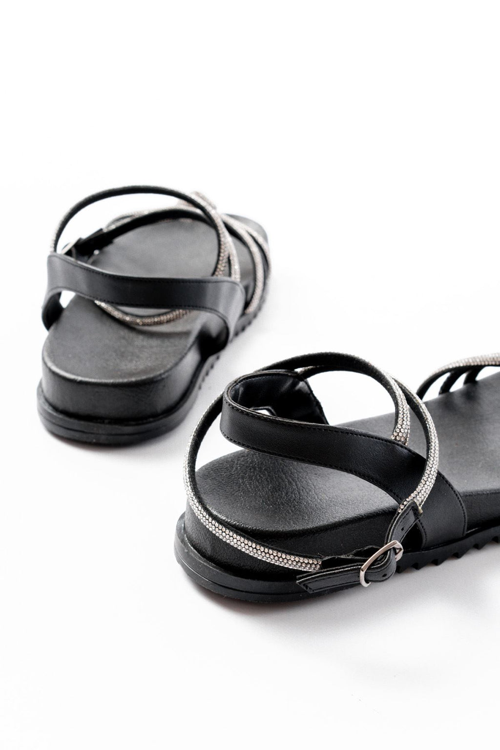 Gümüş taş detaylarıyla sade tasarıma zarif bir hareket kazandıran Paterms modeli, günlük kullanımda dengeli bir görünüm sunar. İnce bant yapısı ayağı nazikçe sararken, bilekten destekli formu yürüyüş boyunca rahat bir tutuş sağlar. Siyah tonun güçlü duruşu sayesinde farklı kombinlerle kolayca uyum yakalar. Tam kalıp yapısı ile ayağa doğal bir oturuş sunan bu model, yaz aylarında şehir hayatından tatil kombinlerine kadar geniş bir kullanım alanı oluşturur.