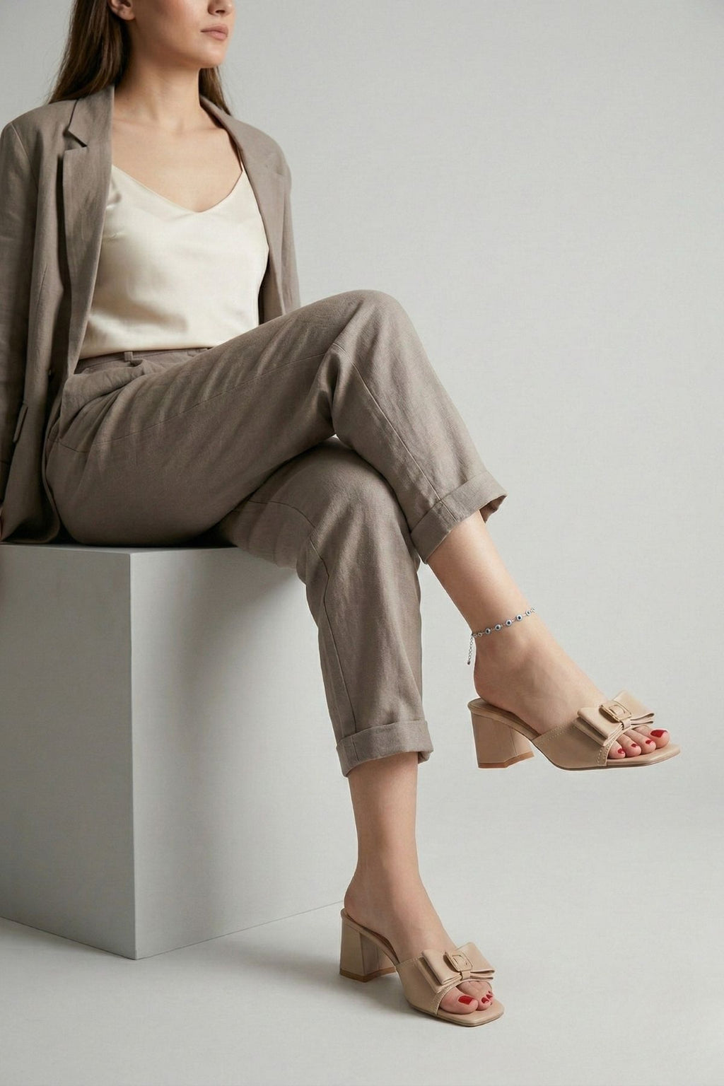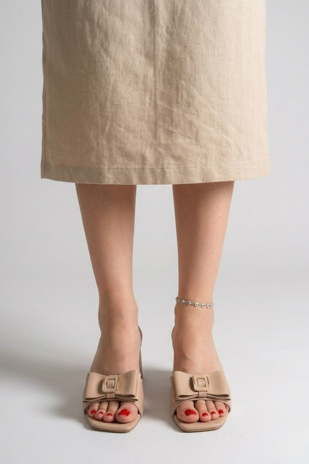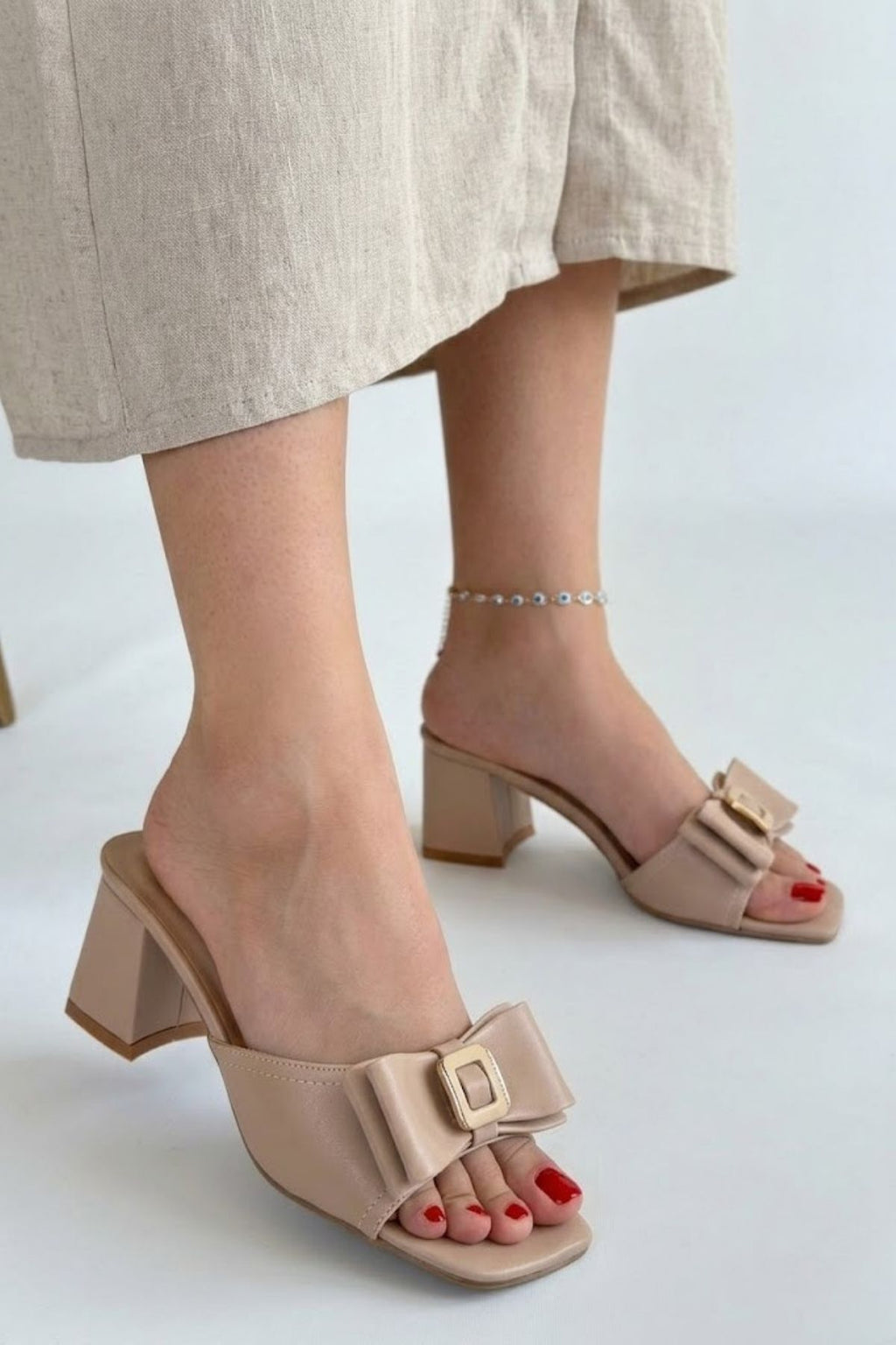 Pier Kadın Nude Tokalı Fiyonk Detaylı Topuklu Terlik