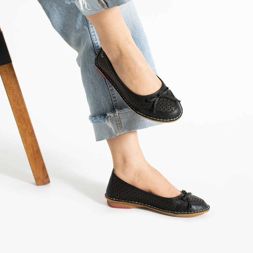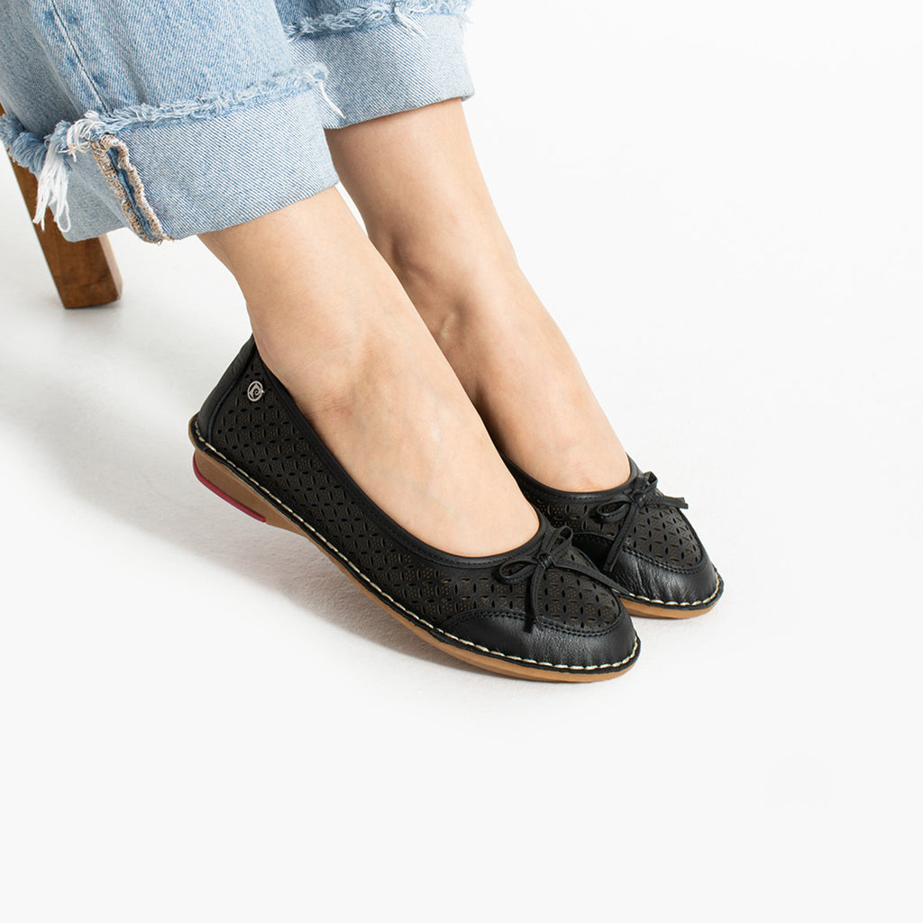 Modern dokunuşlarla yorumlanmış klasik bir duruş! Hafif ve esnek yapısıyla gün boyu konfor sunan bu babet modeli, delikli yüzeyi sayesinde hava alabilirken şık fiyonk detayıyla da zarif bir görünüm sunar. Dikiş detaylarıyla fark yaratan bu model, günlük stiline hareket katmak isteyenler için ideal bir seçenek.