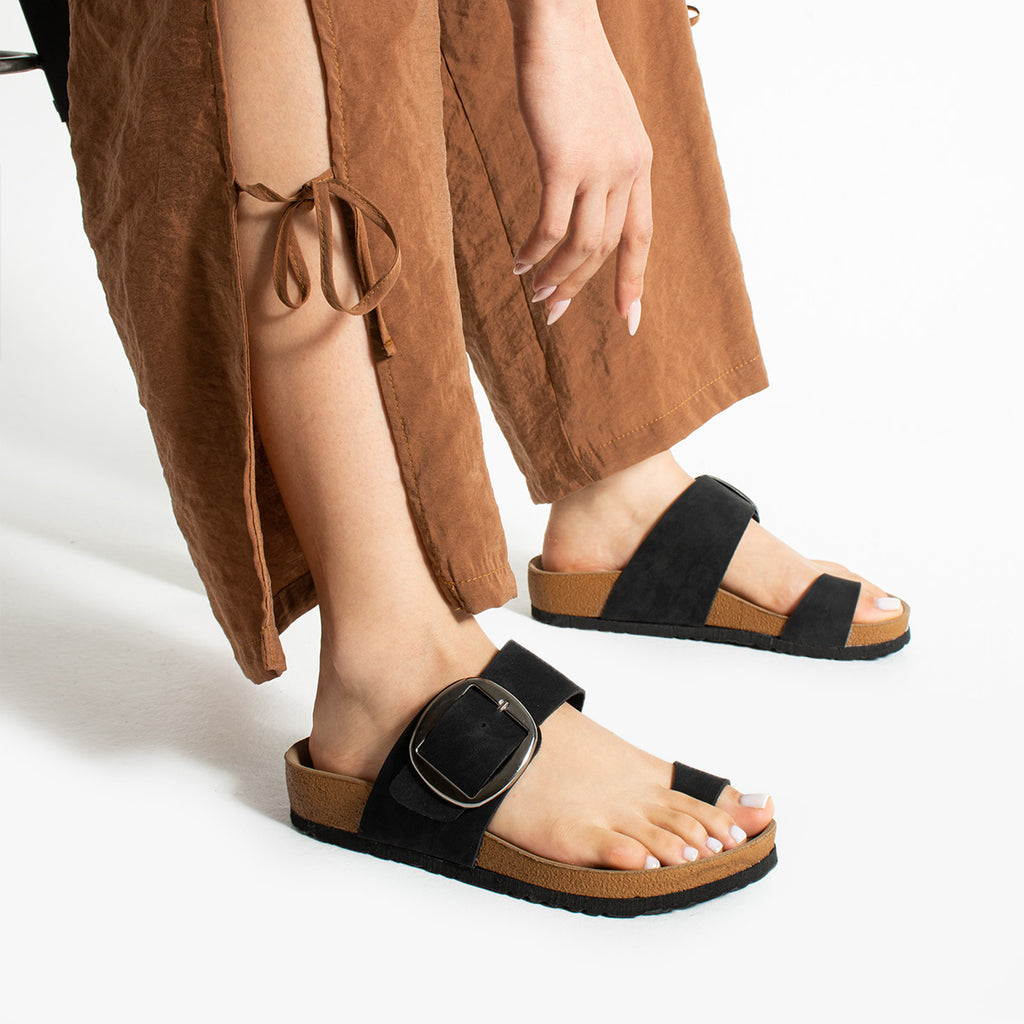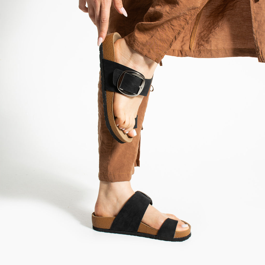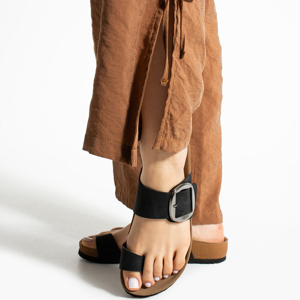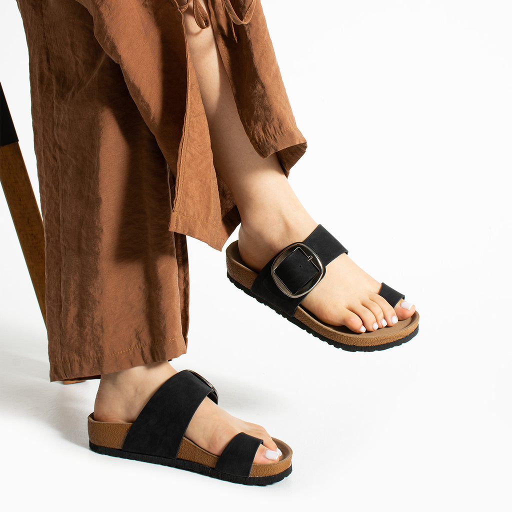 Günlük tarzına zarif bir dokunuş kat! Pu deri üst yüzeyi ve yumuşak iç tabanı sayesinde gün boyu rahatlık sağlayan bu model, büyük toka detayıyla özgün bir görünüm sunar. Farklı stillere kolayca uyum sağlayan yapısı ile yaz kombinlerinin favori parçası olacak.