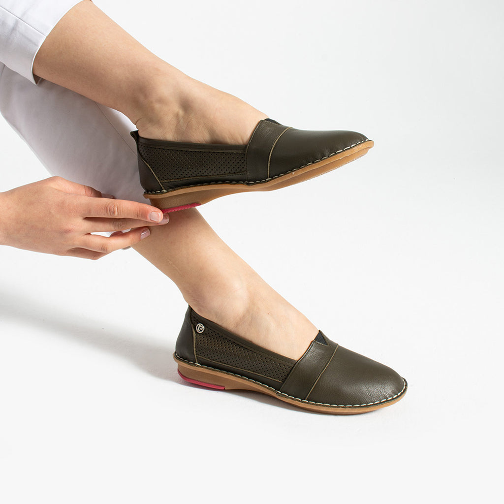 Zarif detayları ve konforlu yapısı ile günlük tarzınızı tamamlayın! Hafif ve esnek tabanı sayesinde gün boyu konfor sağlayan bu model, delikli yan tasarımı ile ayaklarınızın nefes almasına yardımcı olur. Hakiki deri üst yüzeyi dayanıklı bir kullanım sunarken, minimalist tasarımı her kombine uyum sağlar.