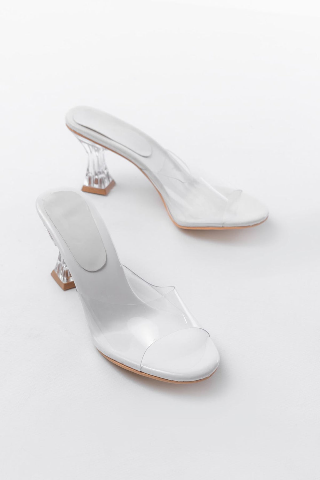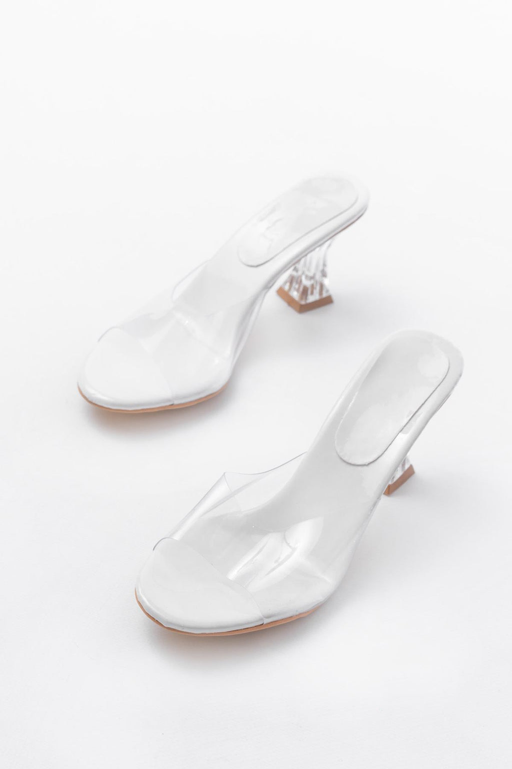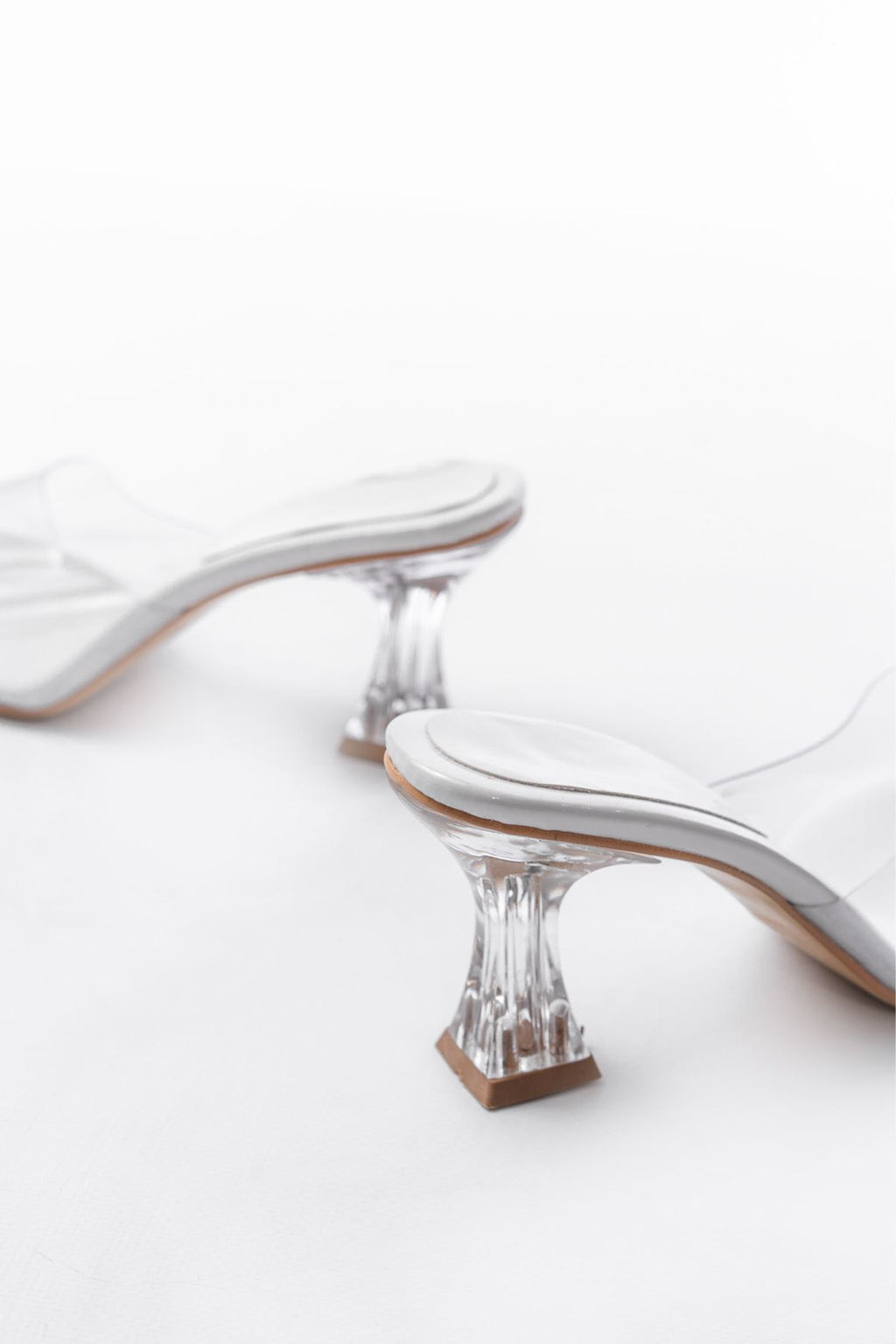 Prument Beyaz Rugan Şeffaf Bantlı Şeffaf Topuklu Yuvarlak Burunlu Kadın Terlik