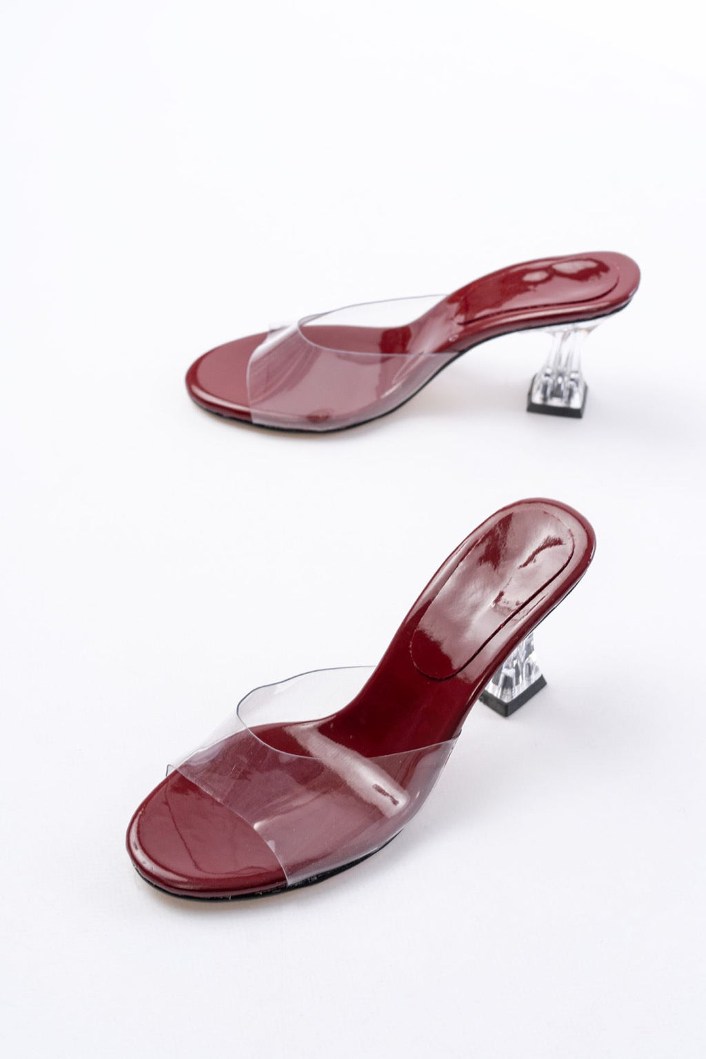 Prument Bordo Rugan Şeffaf Bantlı Şeffaf Topuklu Yuvarlak Burunlu Kadın Terlik