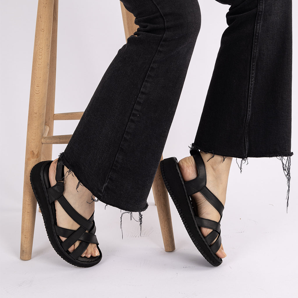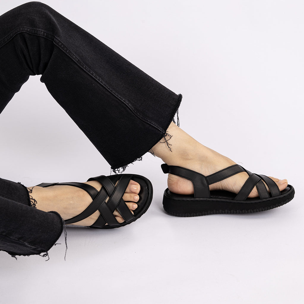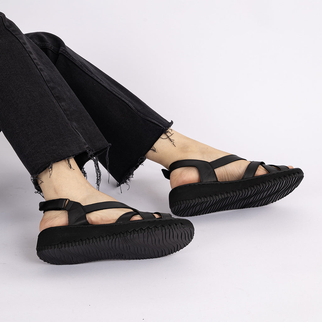 Seta Kadın Hakiki Deri Mat Siyah Sandalet