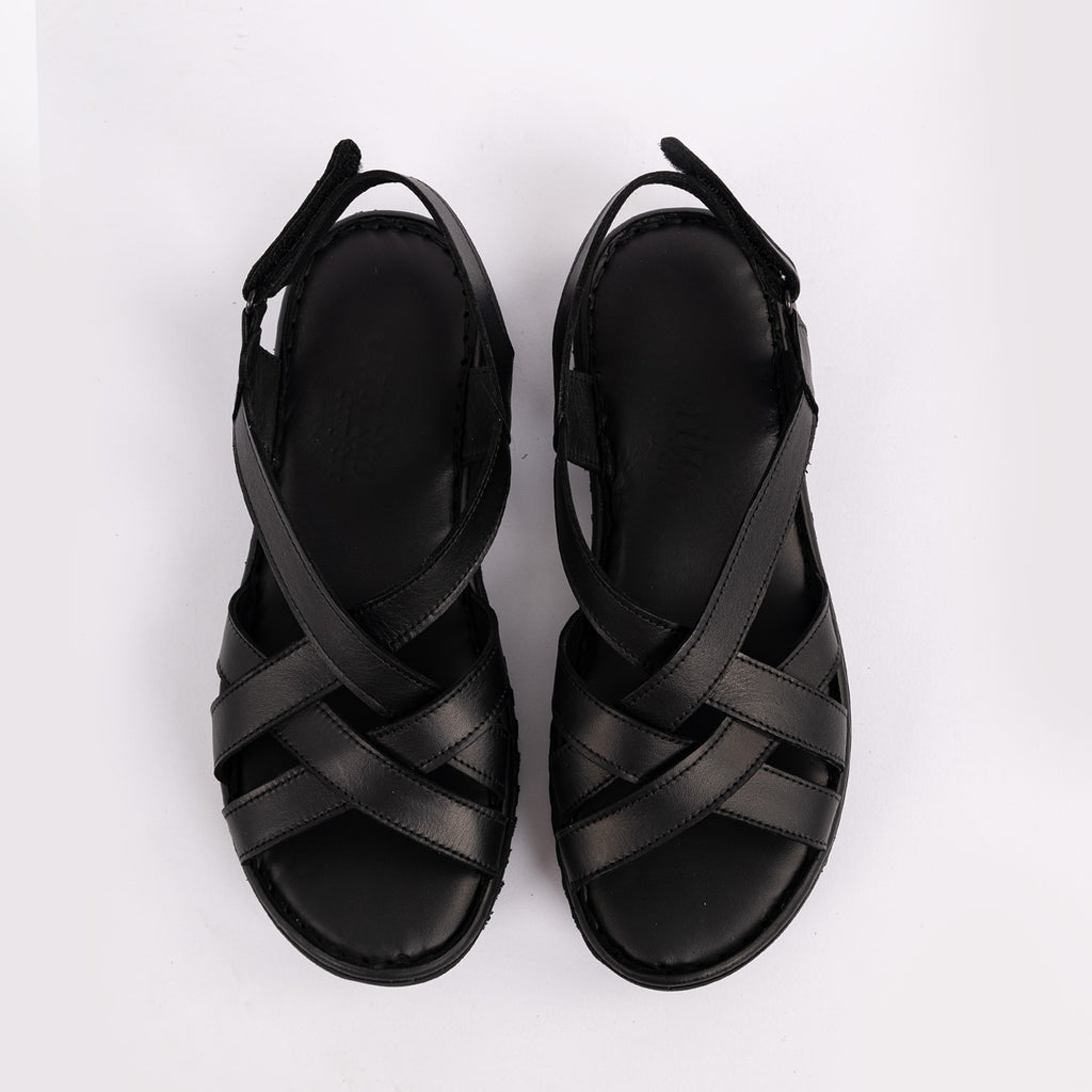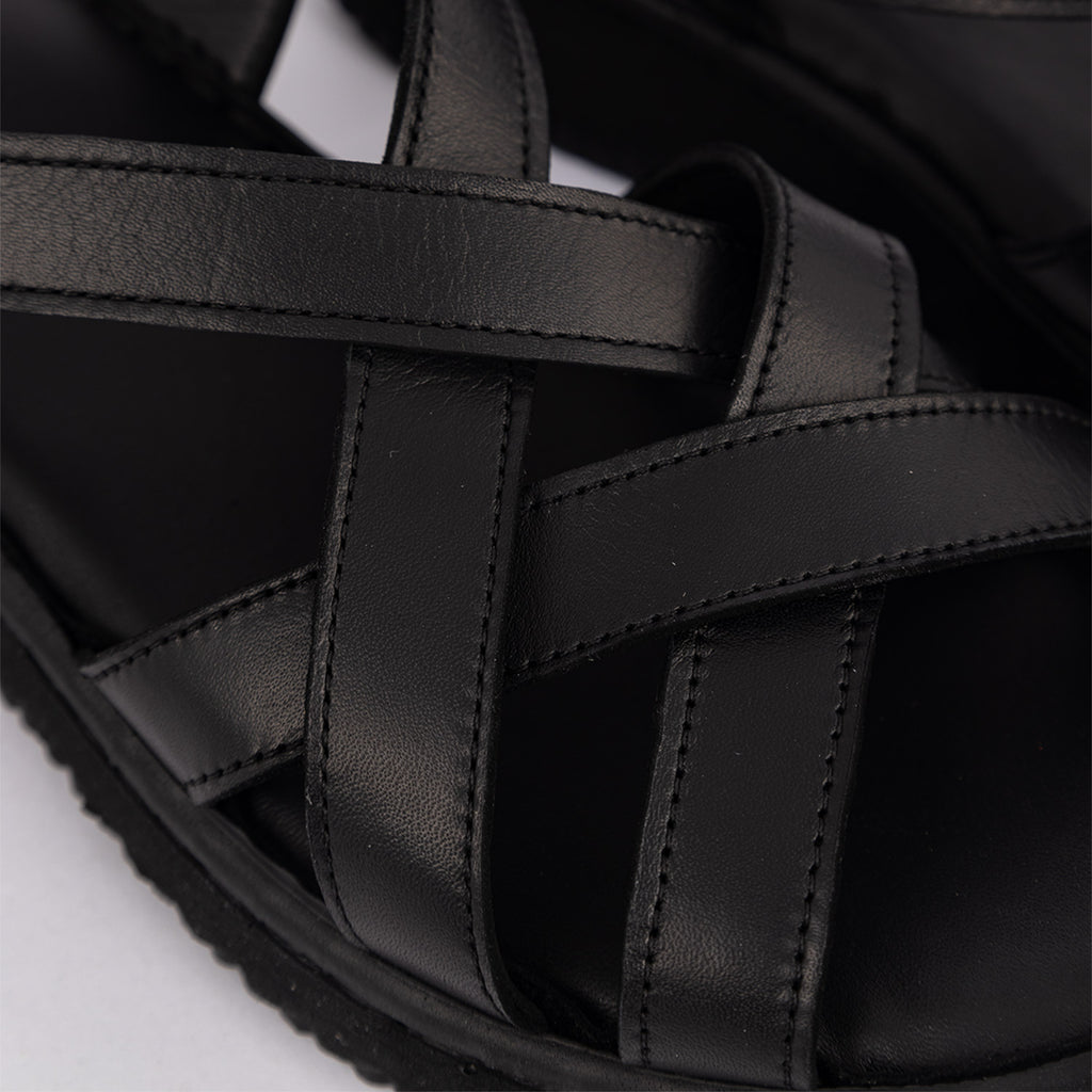 Numba Siyah Hakiki Deri Çapraz Bantlı Kadın Terlik