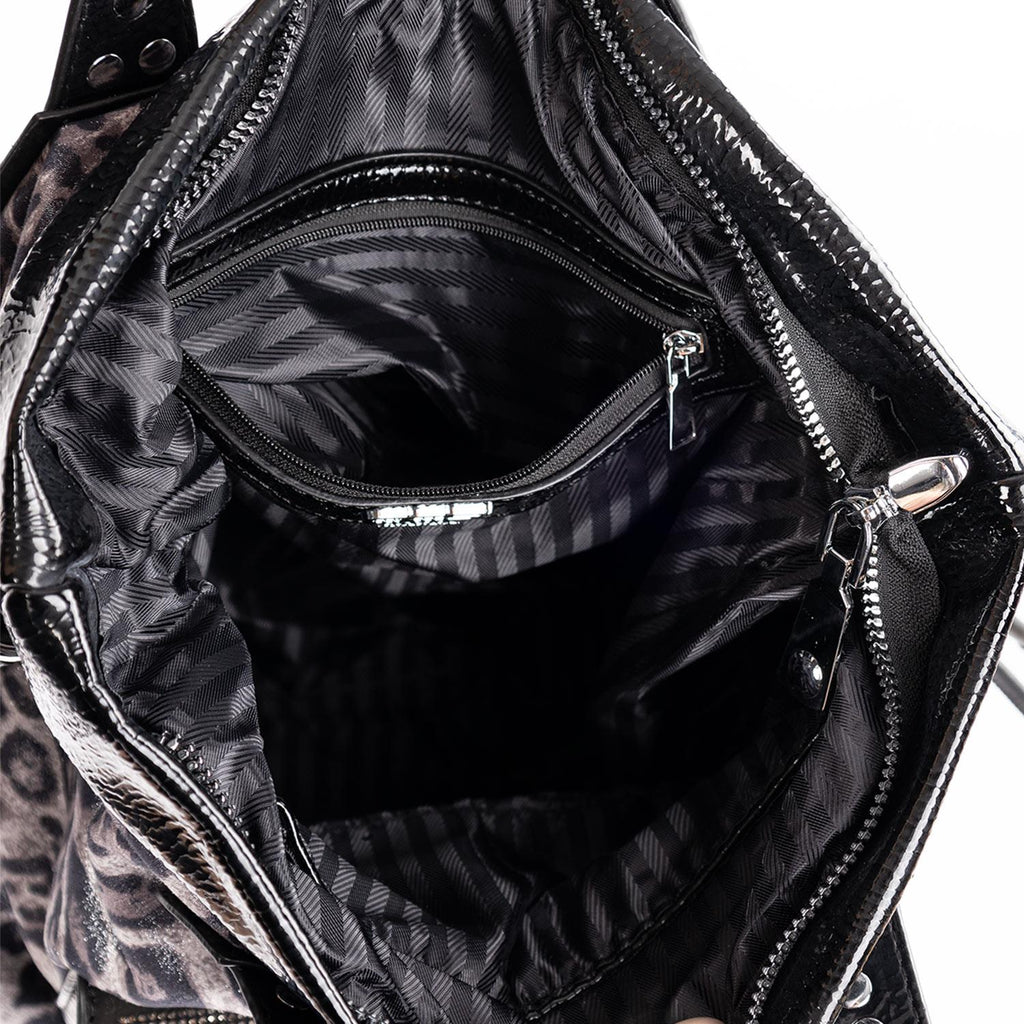 Göz alıcı "Silvana " el çantası ve çapraz çantası, şıklığı ve zarafetiyle öne çıkıyor. Leopar desen detayı ile , çantanın dikkat çekici ve sofistike bir görünüm sunmasını sağlıyor. Hem el çantası hem de çapraz çanta olarak kullanımıyla günlük stilinizi tamamlamak için mükemmel bir seçenek. İthal üründür.