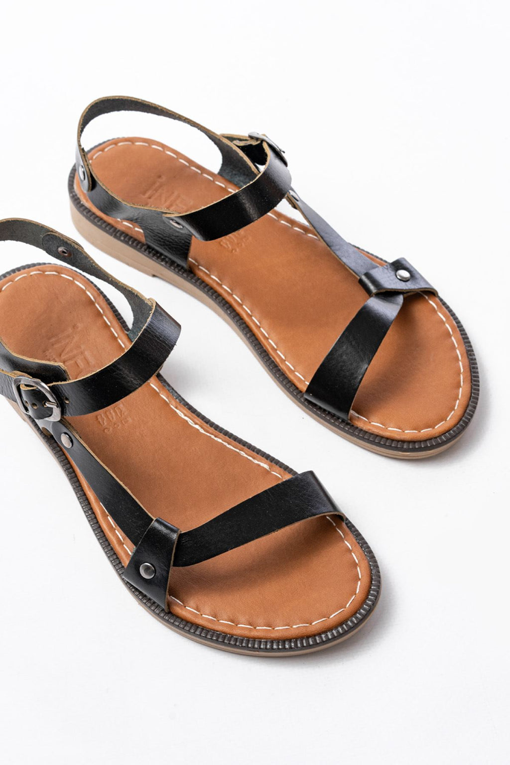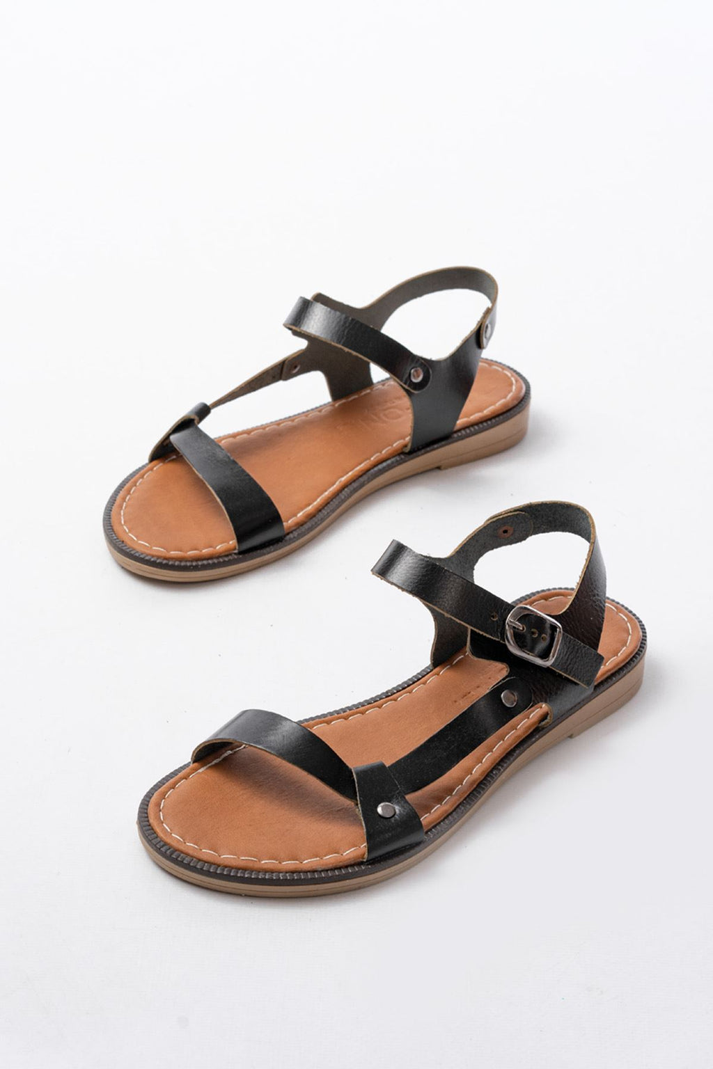 Soyvert Siyah Hakiki Deri Tokalı Kadın Sandalet