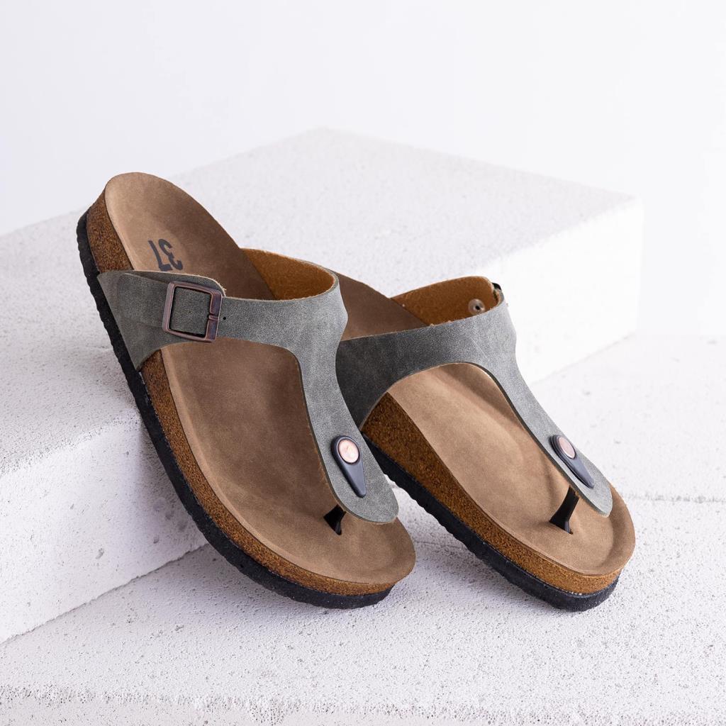Numba Taba Hakiki Deri Çapraz Bantlı Kadın Terlik
