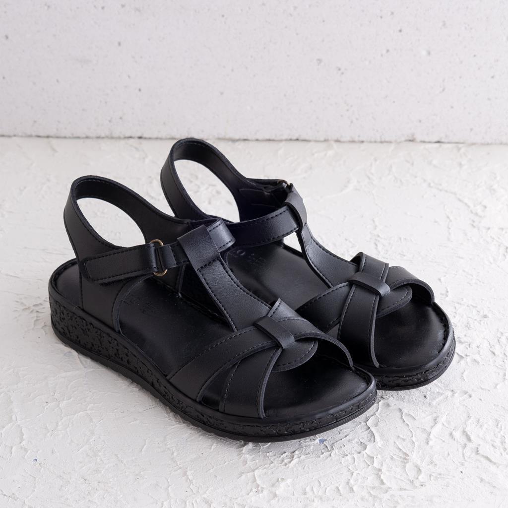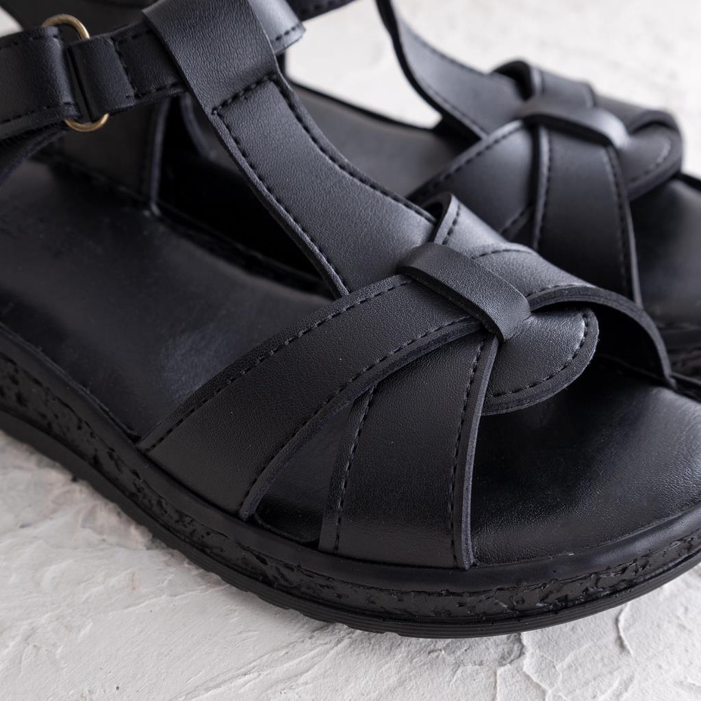 Numba Siyah Hakiki Deri Çapraz Bantlı Kadın Terlik