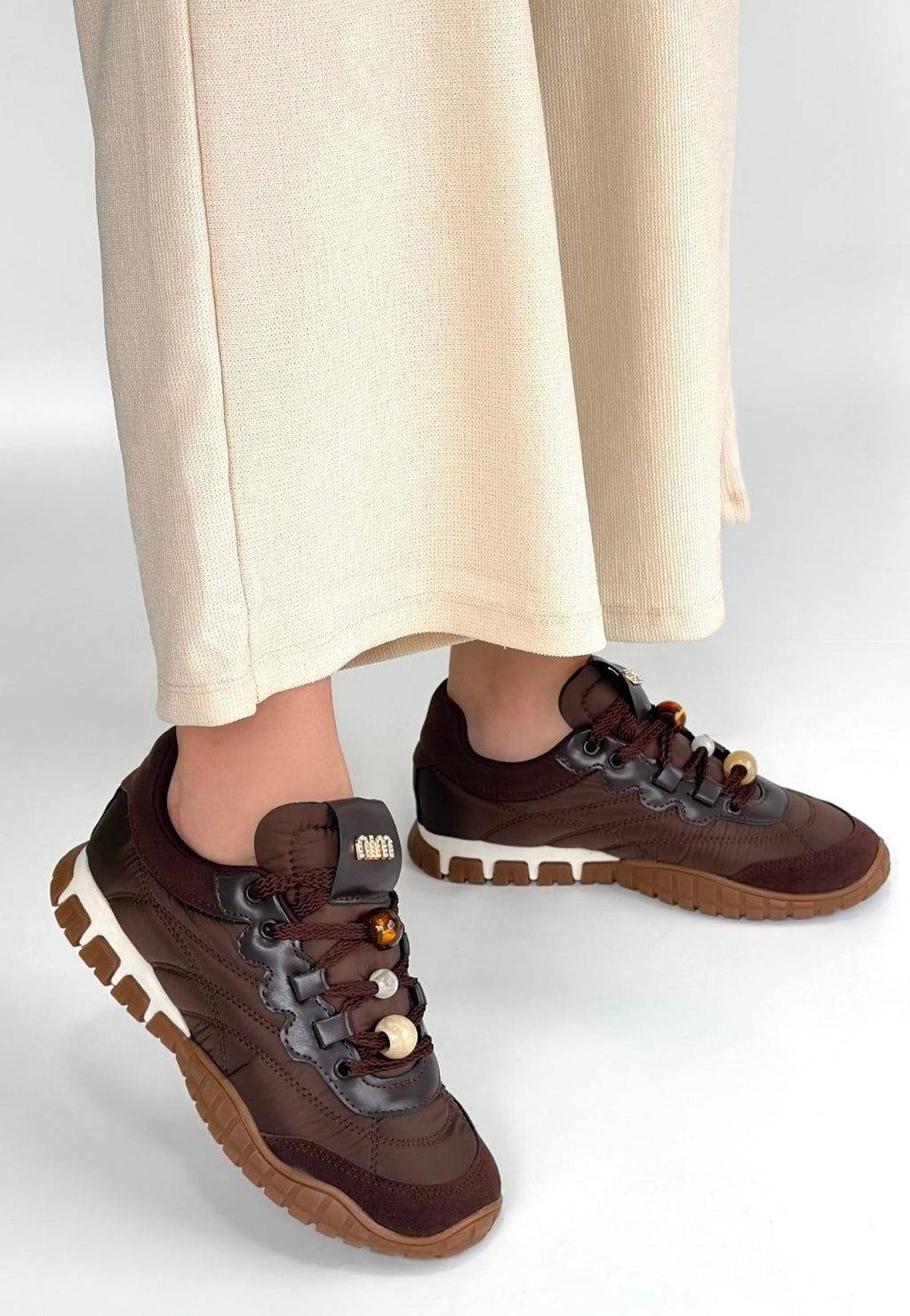 Tues Kadın Kahverengi Nubuk Bağcıklı Spor Ayakkabı