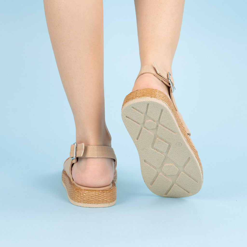 Veseli Kadın Çapraz Bantlı Bej Kot Sandalet