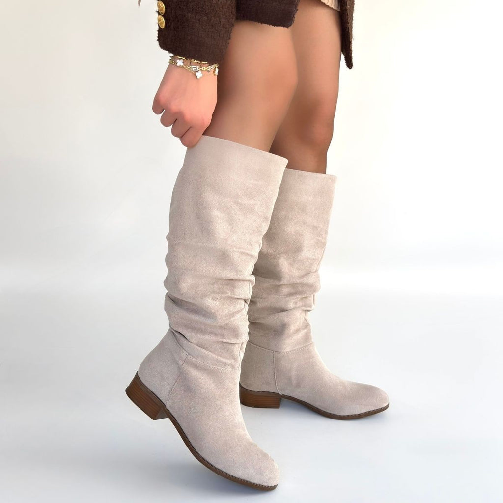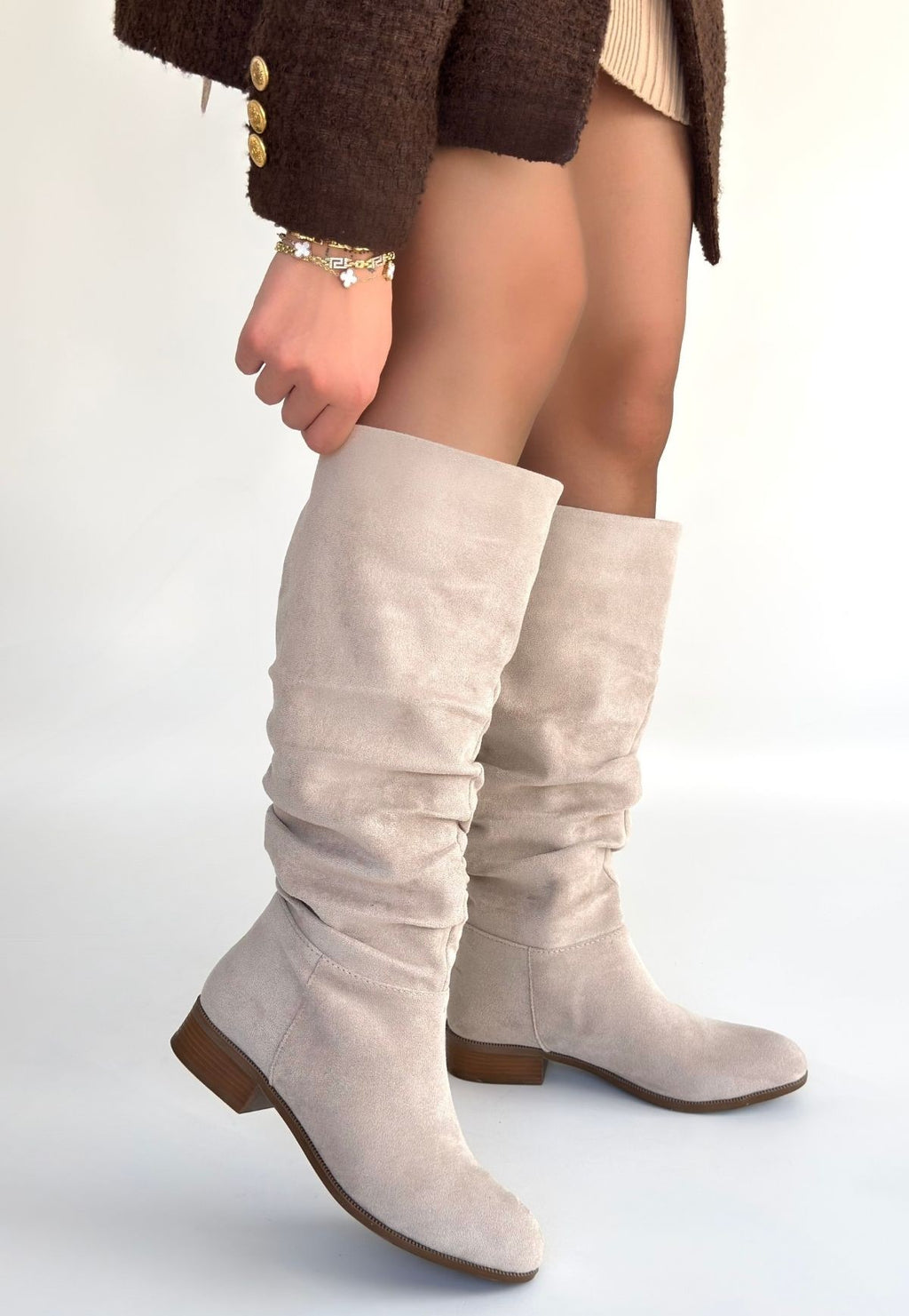 Winda Kadın Bej Süet Körüklü Kahverengi Topuklu Çizme