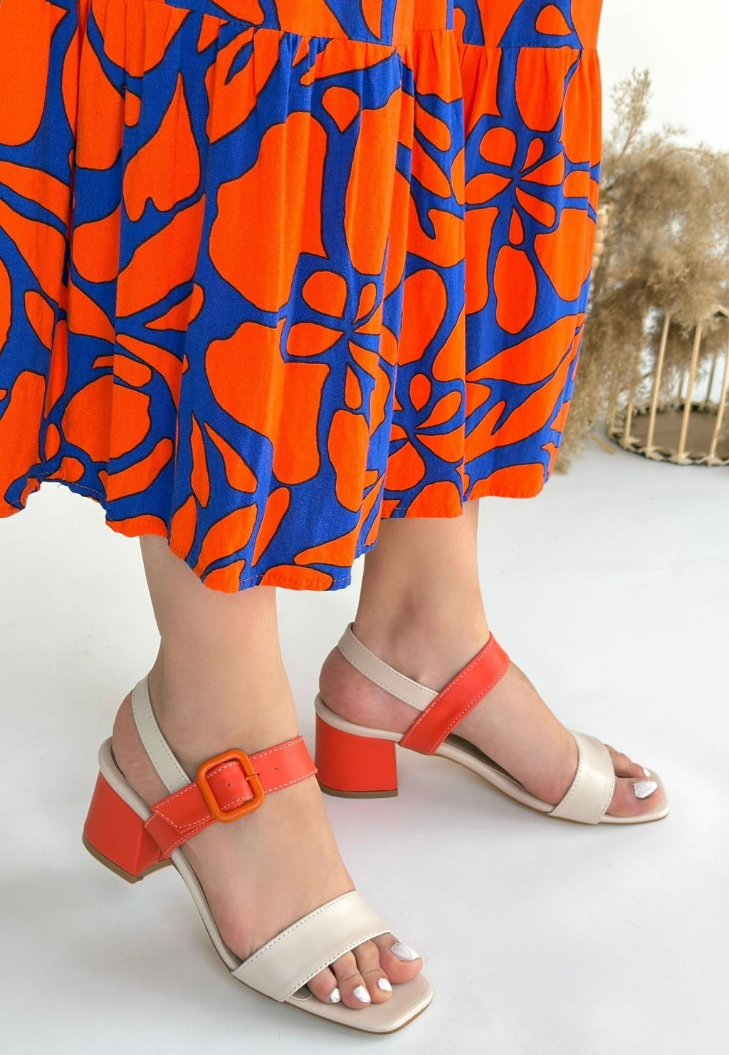 Year Kadın Bej Kemerli Turuncu Detaylı Topuklu Sandalet