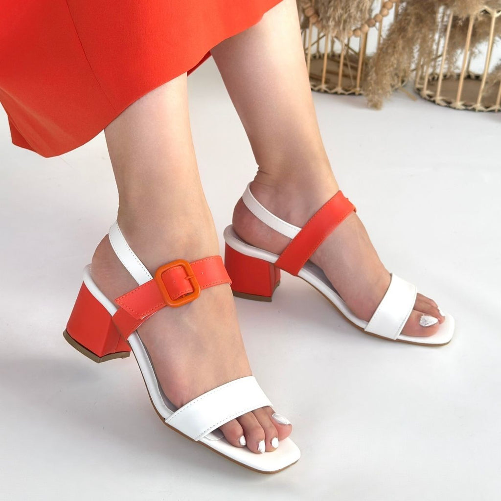 Year Kadın Beyaz Turuncu Detaylı Topuklu Sandalet