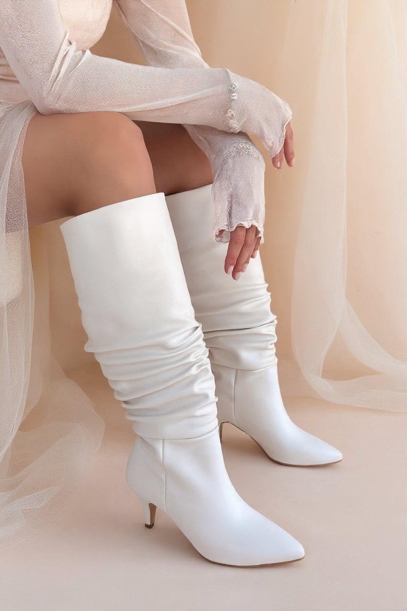Zelya Beyaz Topuklu Kadın Çizme